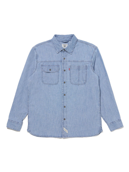 クラシックなシルエットを採用したボディにユーティリティポケットを配したデザインのワークシャツ。春先の定番でもあるシャンブレー生地なのでカジュアルにジーンズと合わるのは勿論、少しフォーマルにスラックパンツなどとの相性も良く、あらゆるシーンで活躍する一着です。