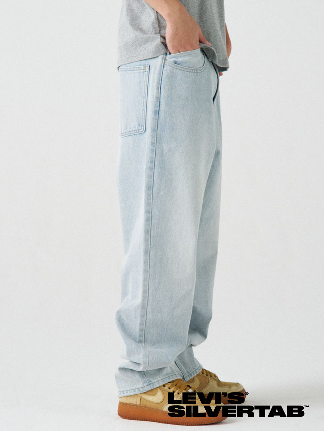 Levi’s® SILVERTAB™は、リーバイス®のコンテンポラリーラインとして、1985年にスタートしました。リーバイス®ジーンズのシンボルであるタブがシルバーで、その独特の雰囲気のバギーやルーズなど、ワイドで緩さがあるリラックスシルエットは、当時のストリートやミュージック等のカルチャーと融合し、ヨーロッパ―の若者を中心に爆発的な人気を博したラインです。女性のファンも多くジェンダーフリーで楽しめるSILVERTAB™コレクションは、昨今の日本の古着市場でも最も多くリサーチされている人気ラインの一つです。