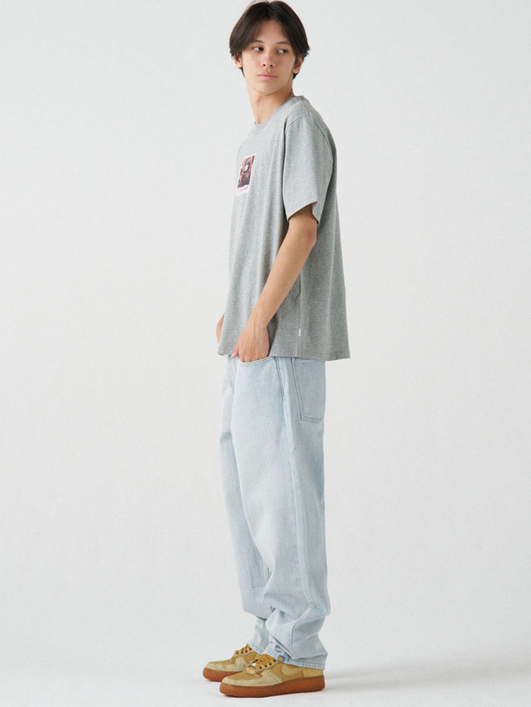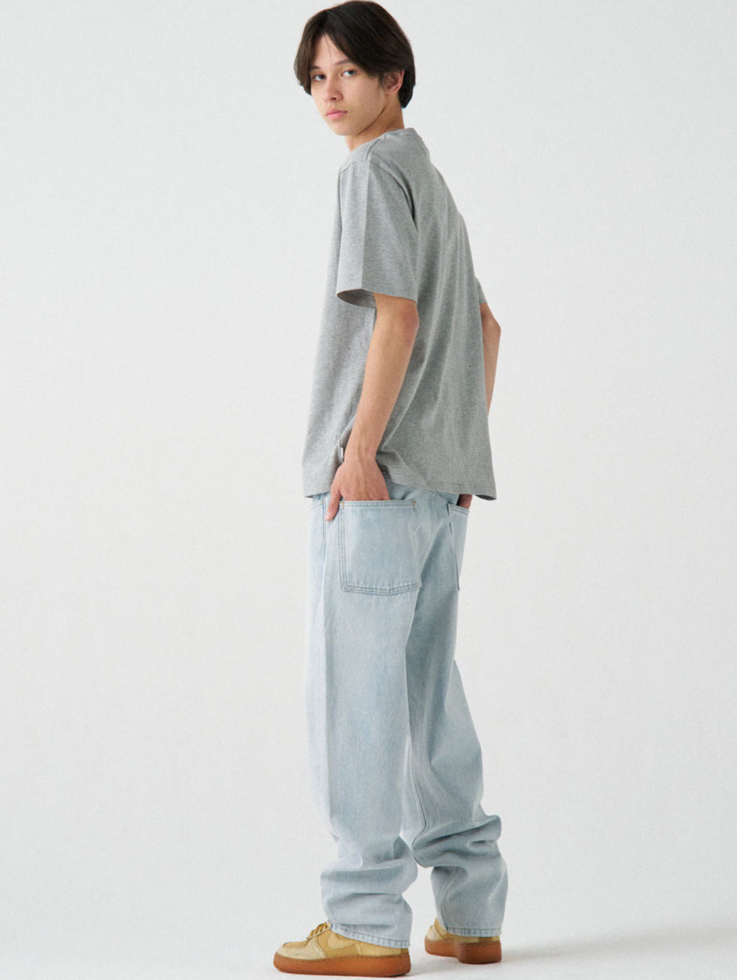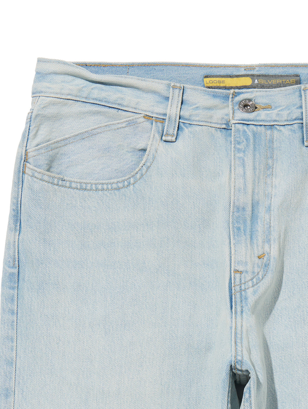 SILVERTAB™を代表するフィットの一つである「LOOSE」。全体的にルーズでゆとりがありながらも、裾に向かって細くなるテーパードになっているので足元が引き立つのが魅力のシルエット。色味が残る限界までの色落ち加工を施し、90年代を感じさせるいなたい色味と雰囲気のあるジーンズです。足元にボリュームを出しながら穿いて頂くのがオススメです。