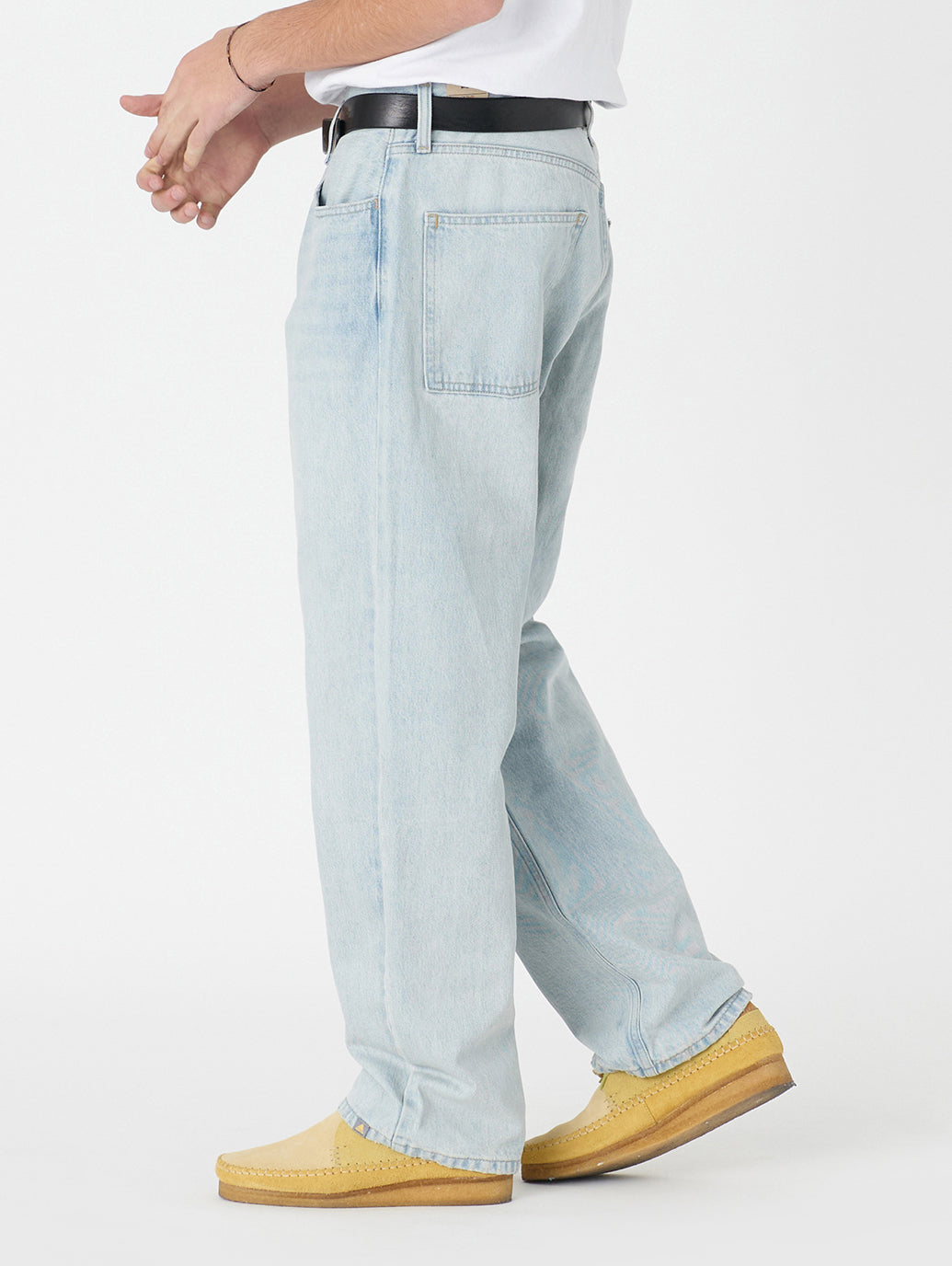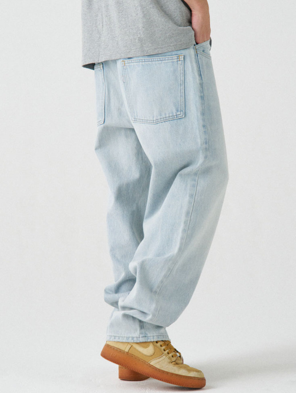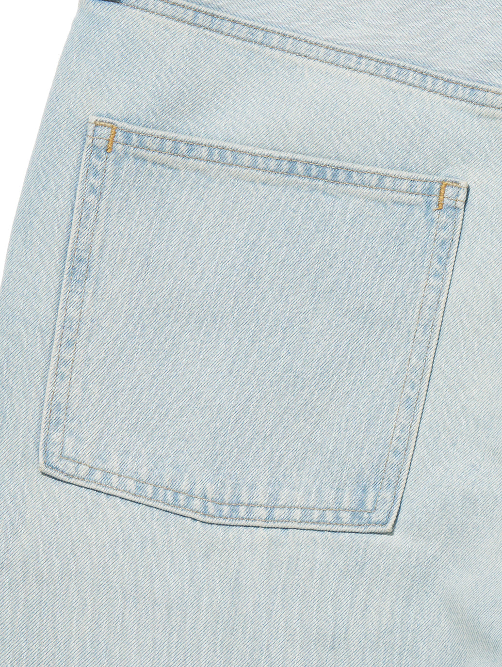SILVERTAB™を代表するフィットの一つである「LOOSE」。全体的にルーズでゆとりがありながらも、裾に向かって細くなるテーパードになっているので足元が引き立つのが魅力のシルエット。色味が残る限界までの色落ち加工を施し、90年代を感じさせるいなたい色味と雰囲気のあるジーンズです。足元にボリュームを出しながら穿いて頂くのがオススメです。