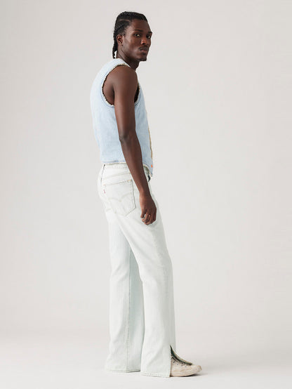 このブーツカットジーンズは、トップ部分が細めで膝とレッグはゆったりというERLらしいフィットに、クラシックなLevi’s® 517™のフィットを組み合わせています。微妙なフレアを出すためのサイドシームスリットとディストレスト感があるウエストバンドを持ち、バックポケットにはERLのウェーブステッチを施しました。そして従来のバックパッチの代わりに、白いツーホースプルのエンブレムがプリントされています。