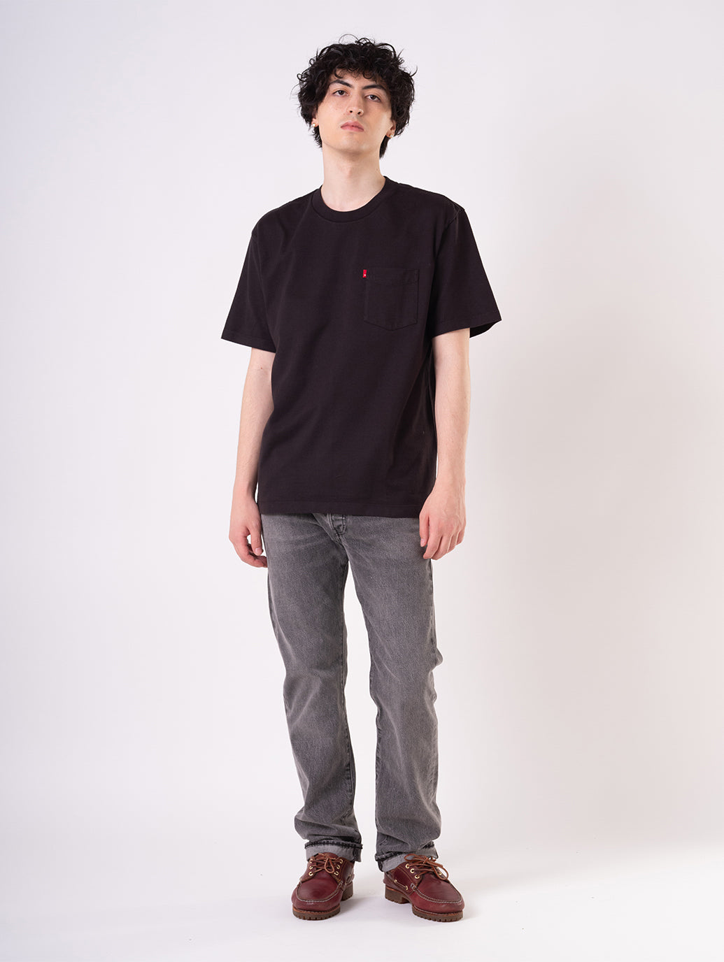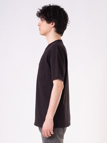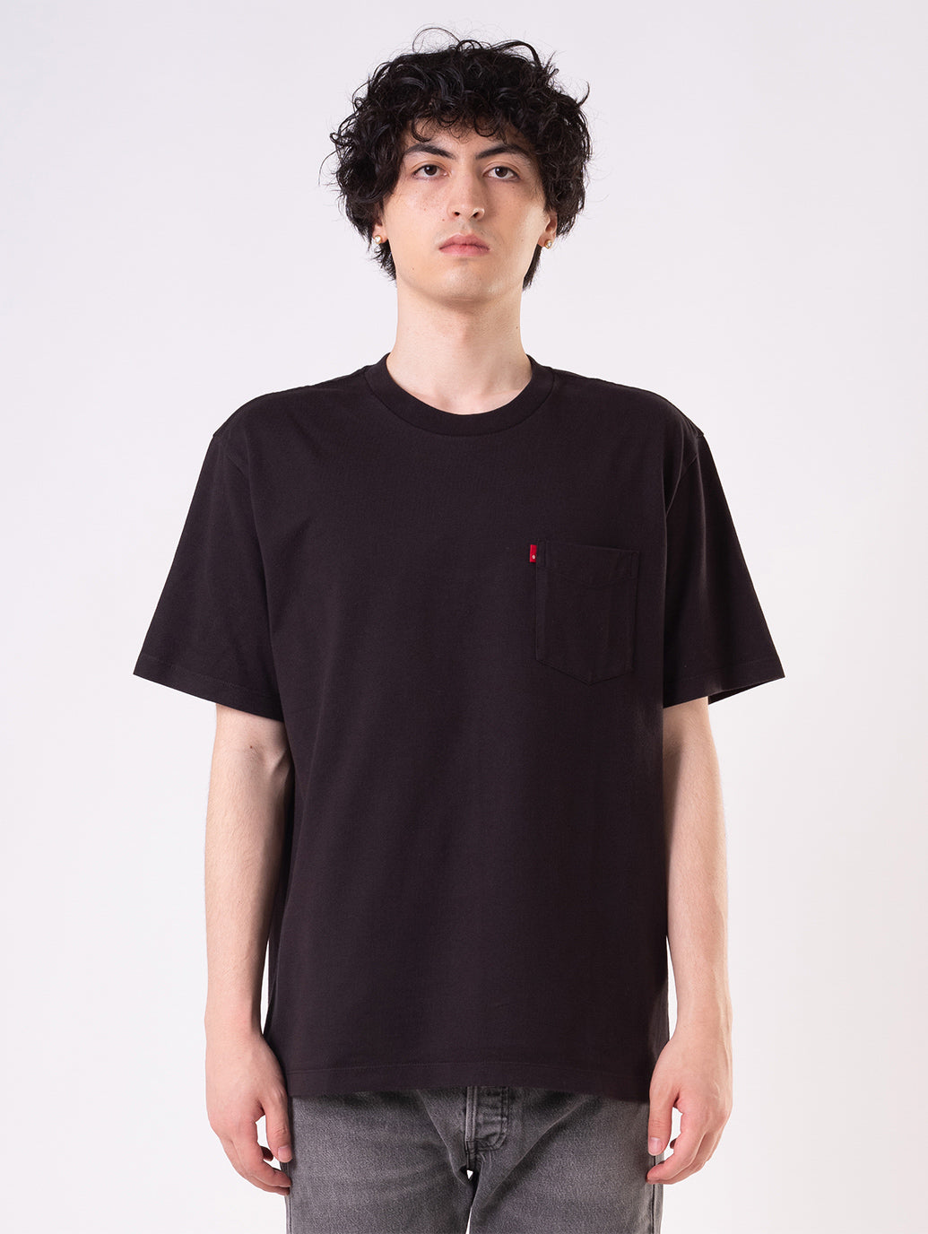 夏の定番トップスの一つであるポケットTシャツ。ブラックカラーのゆったりとしたリラックスフィットのボディの胸元にポケットを配したシンプルなデザインです。幅広いスタイリングで重宝する一着です。