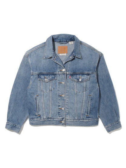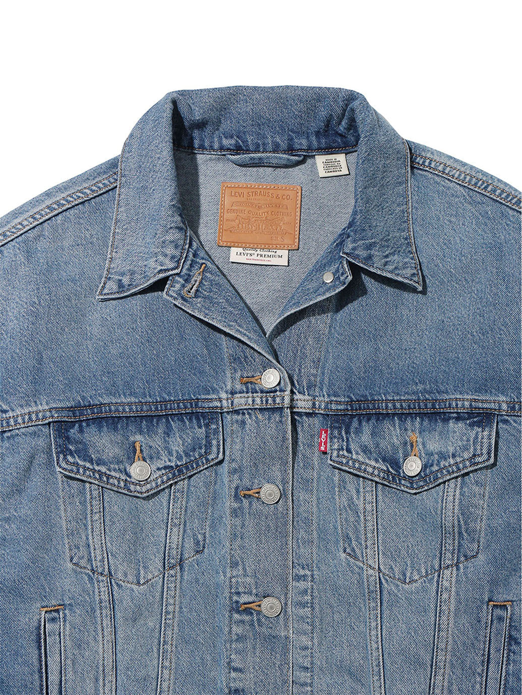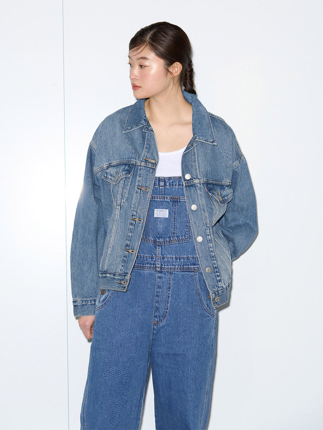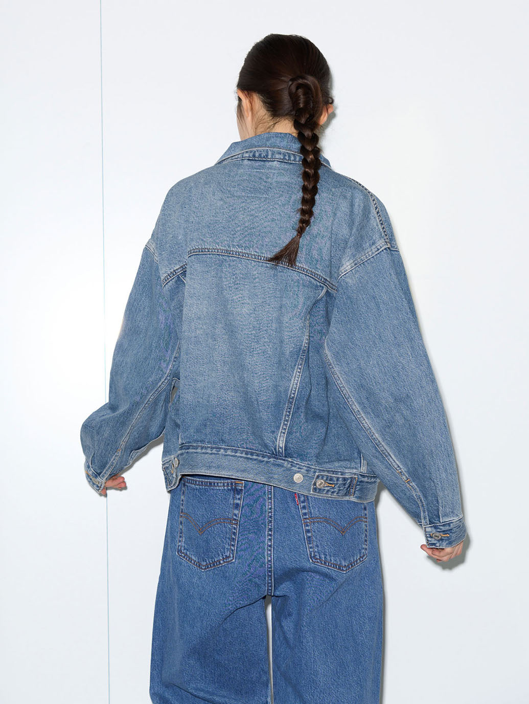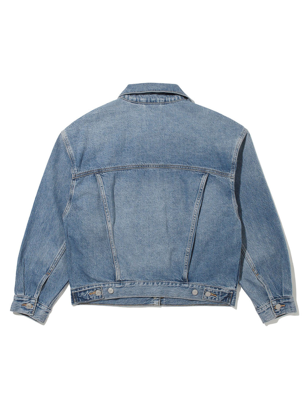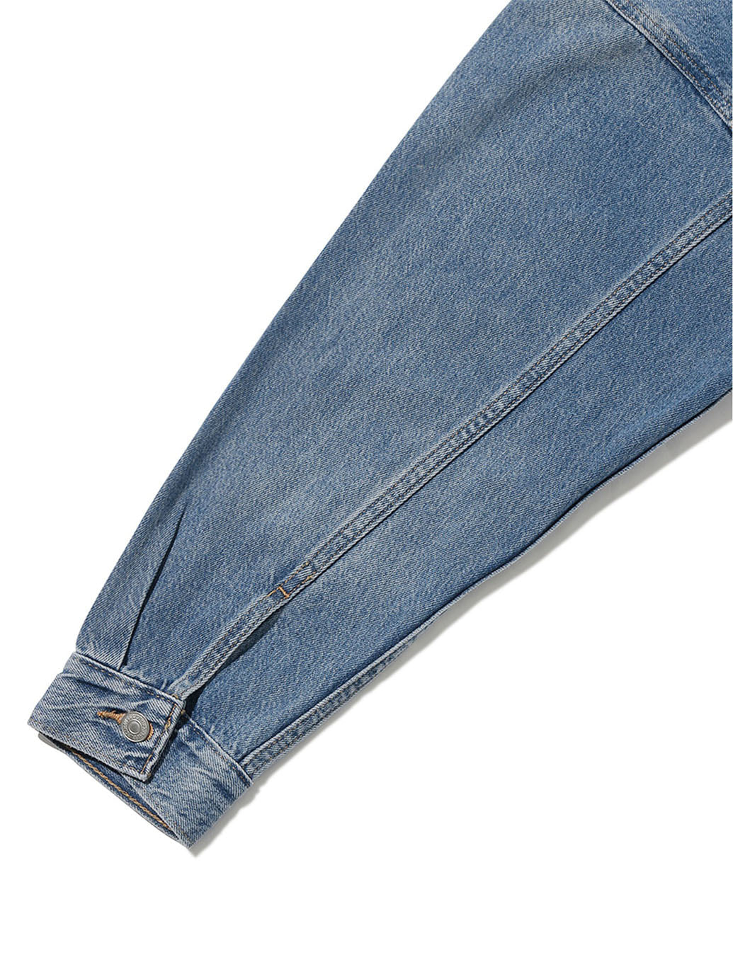 シンプルなシェイプで、着やすいウェイトまわりのデザインのデニムジャケット。ボディラインに沿ったレトロなカットのシルエットが90年代風の雰囲気を演出します。同じカラーのボトムスと合わせてセットアップが完成します。