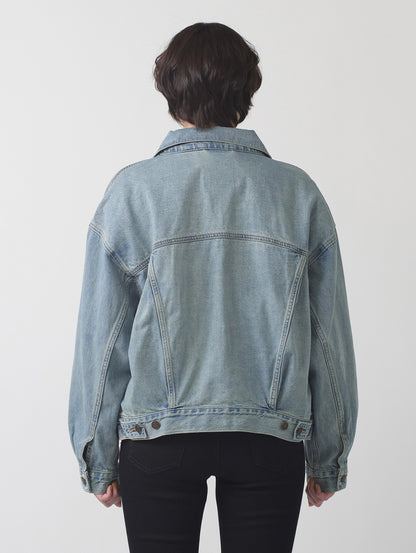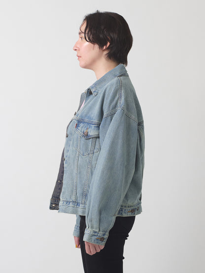 シンプルなシェイプで、着やすいデザインのデニムジャケットがこれからの季節にピッタリなカラーで登場しました。ボディラインに沿ったレトロなカットのシルエットが90年代風の雰囲気を演出します。同じカラーのボトムスと合わせてセットアップをお楽しみいただけます。