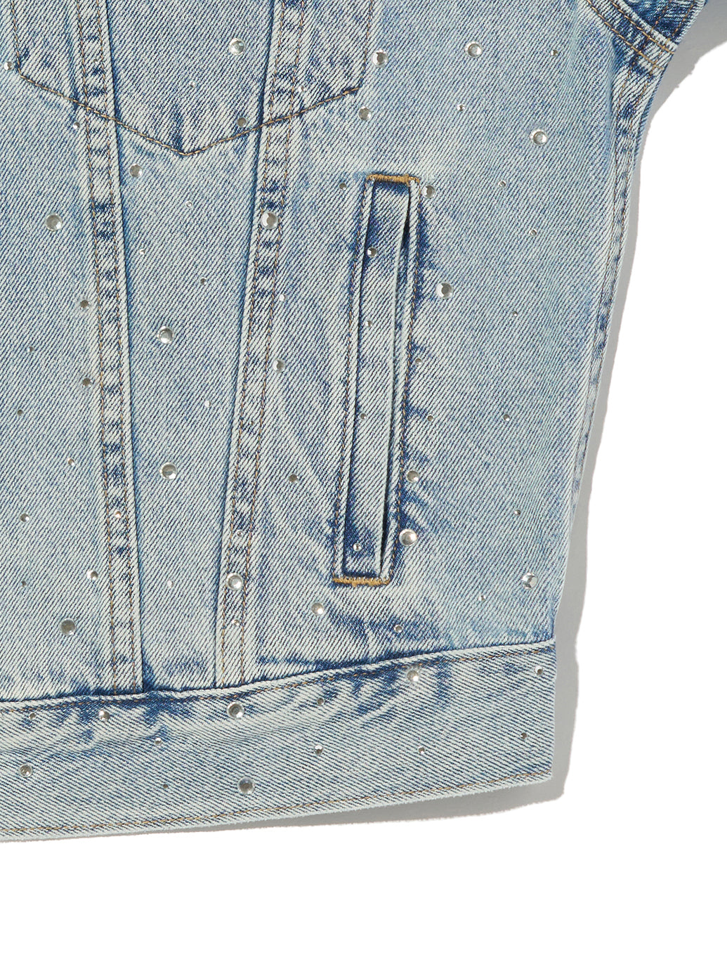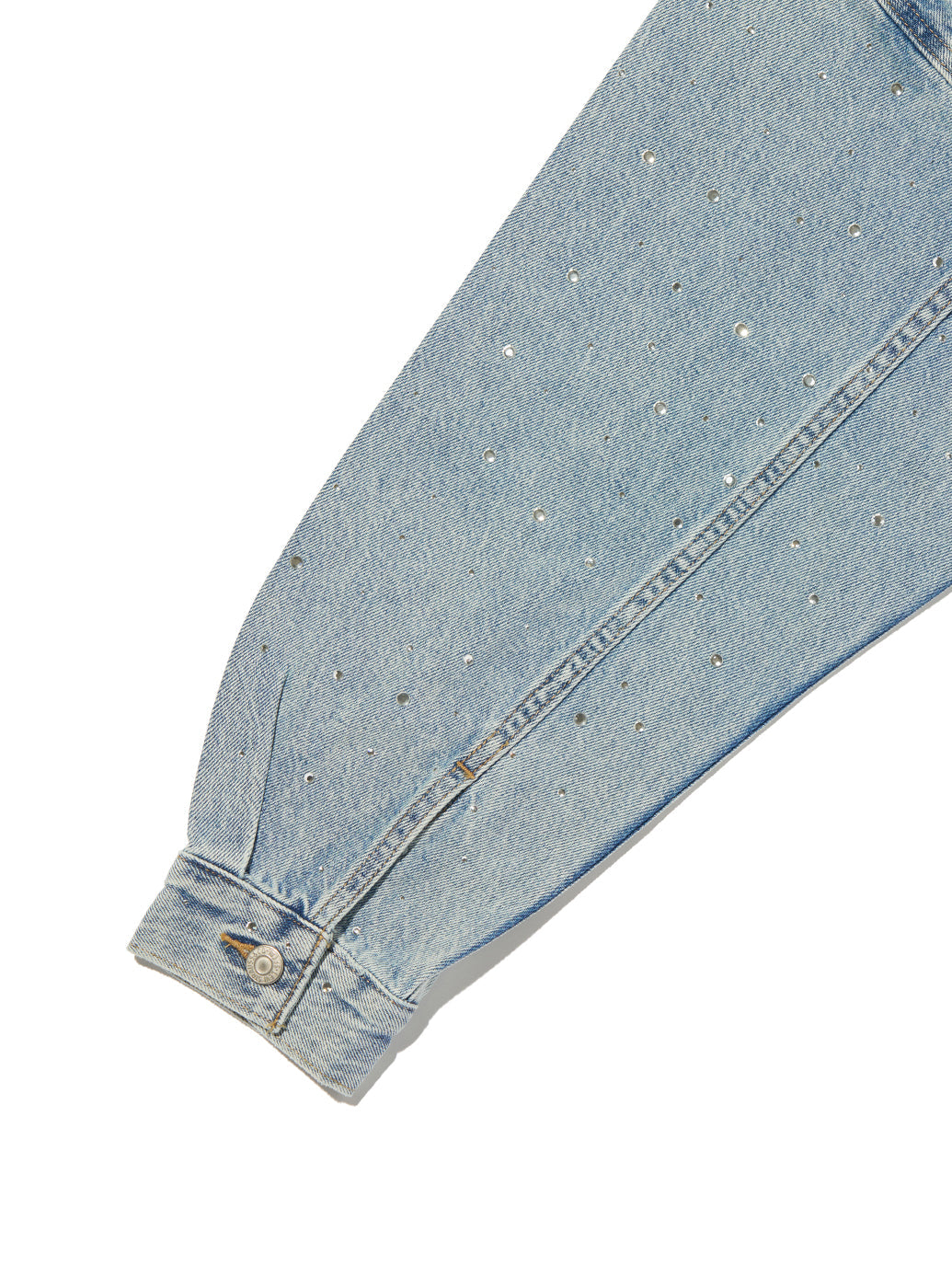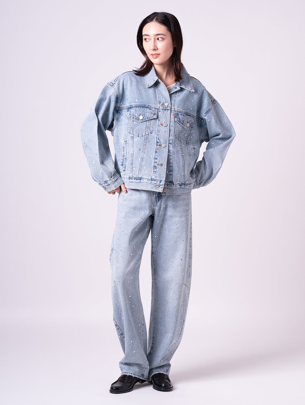 シンプルなシェイプで、着やすいウェイトまわりのデザインのデニムジャケット。ボディラインに沿ったレトロなカットのシルエットが90年代風の雰囲気を演出します。同じカラーのボトムスと合わせてセットアップが完成します。