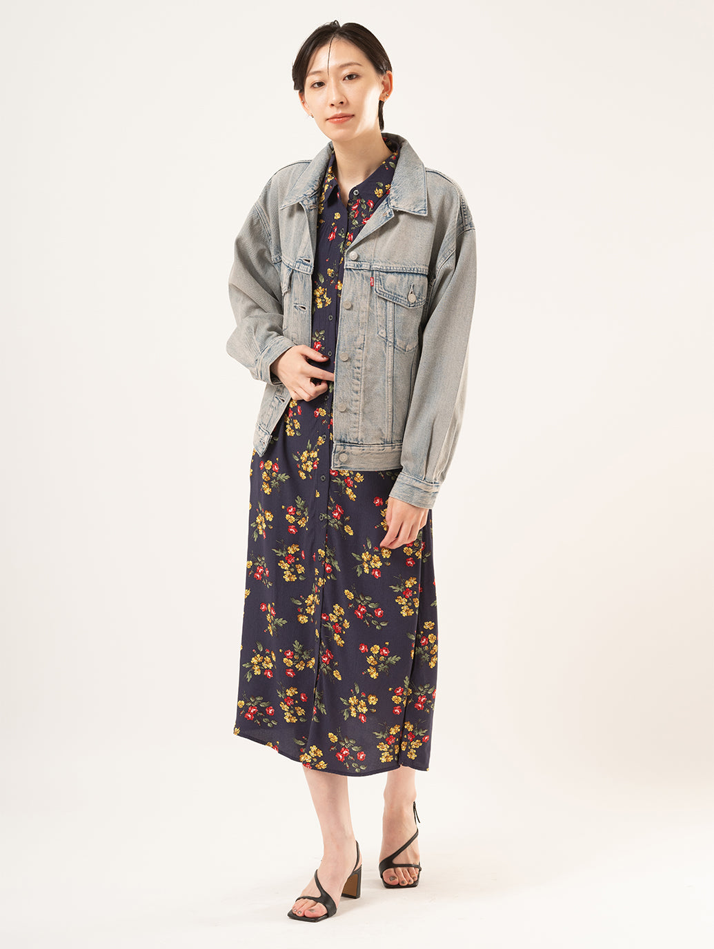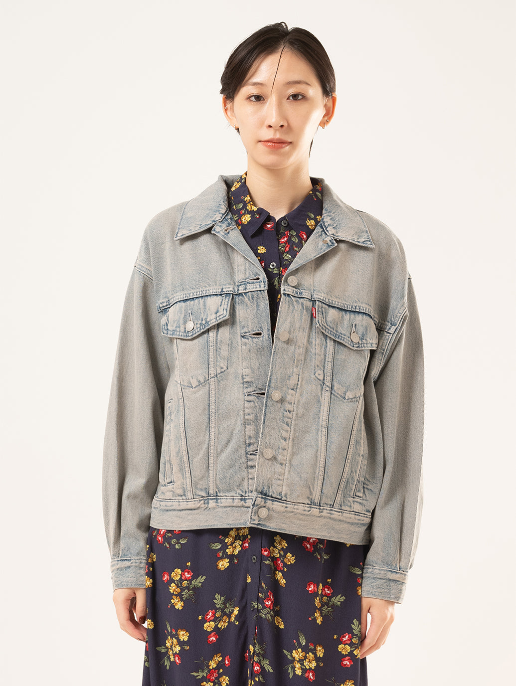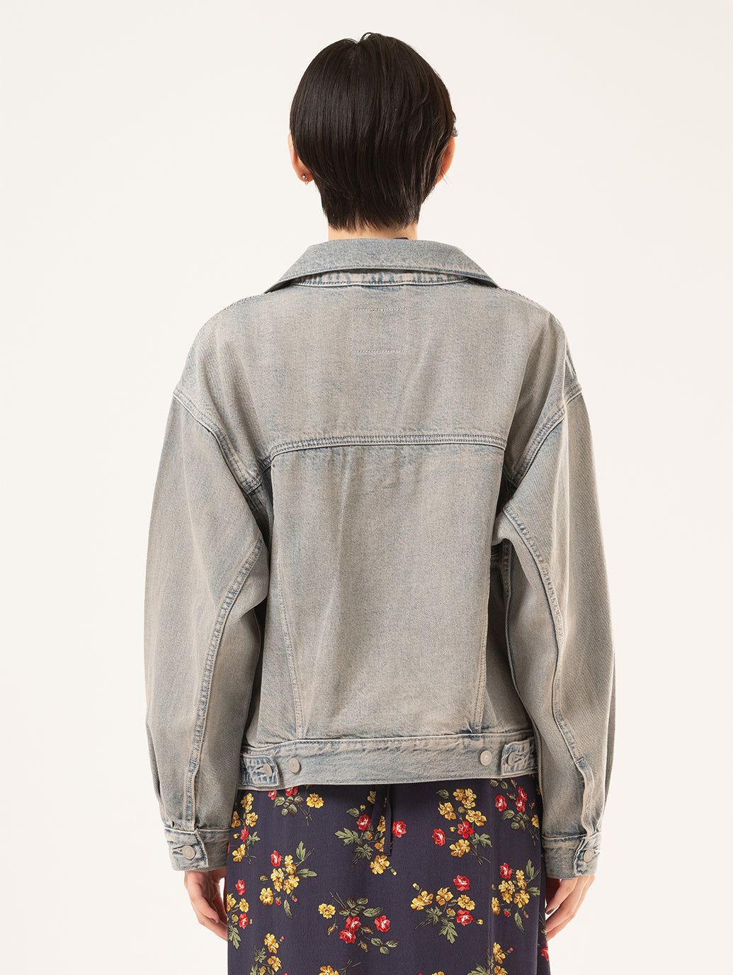 シンプルなシェイプで、着やすいウェイトまわりのデザインのデニムジャケット。ボディラインに沿ったレトロなカットのシルエットが90年代風の雰囲気を演出します。同じカラーのボトムスと合わせてセットアップが完成します。