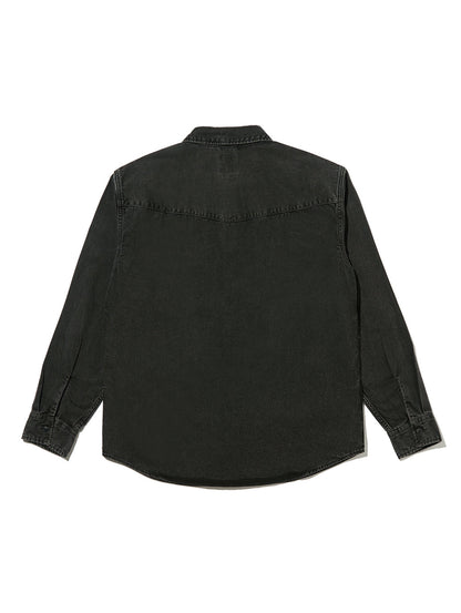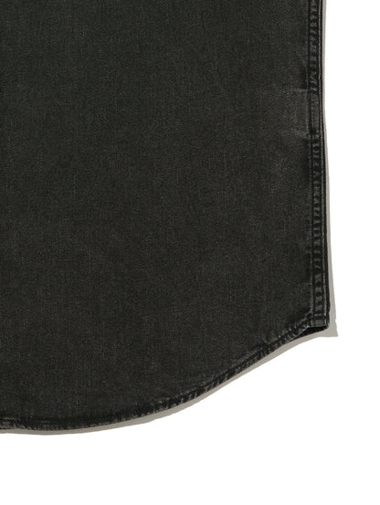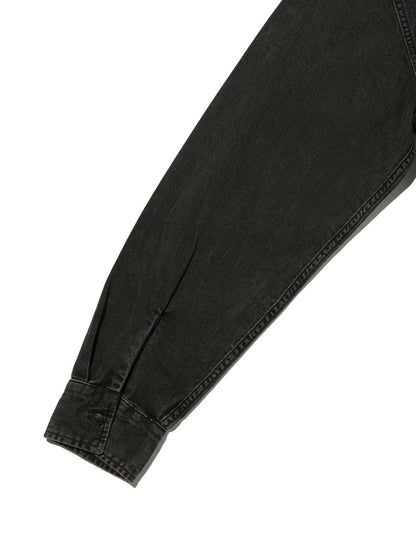 綿100%のブラックカラーデニムのゆとりのあるリラックスシルエットを採用して。チノやワークパンツにも合わせやすく着回しの効く一着です。