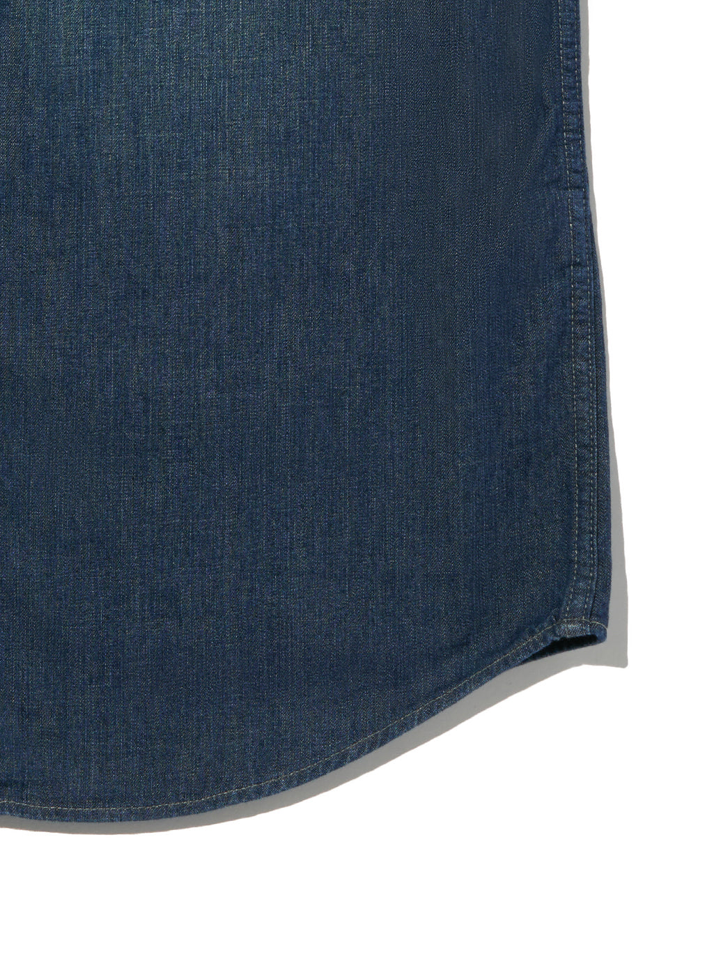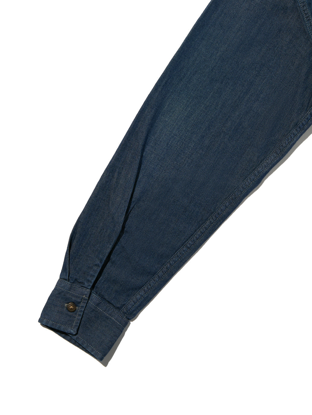 綿100%のダークインディゴカラーデニムのゆとりのあるリラックスシルエットを採用して。チノやワークパンツにも合わせやすく着回しの効く一着です。