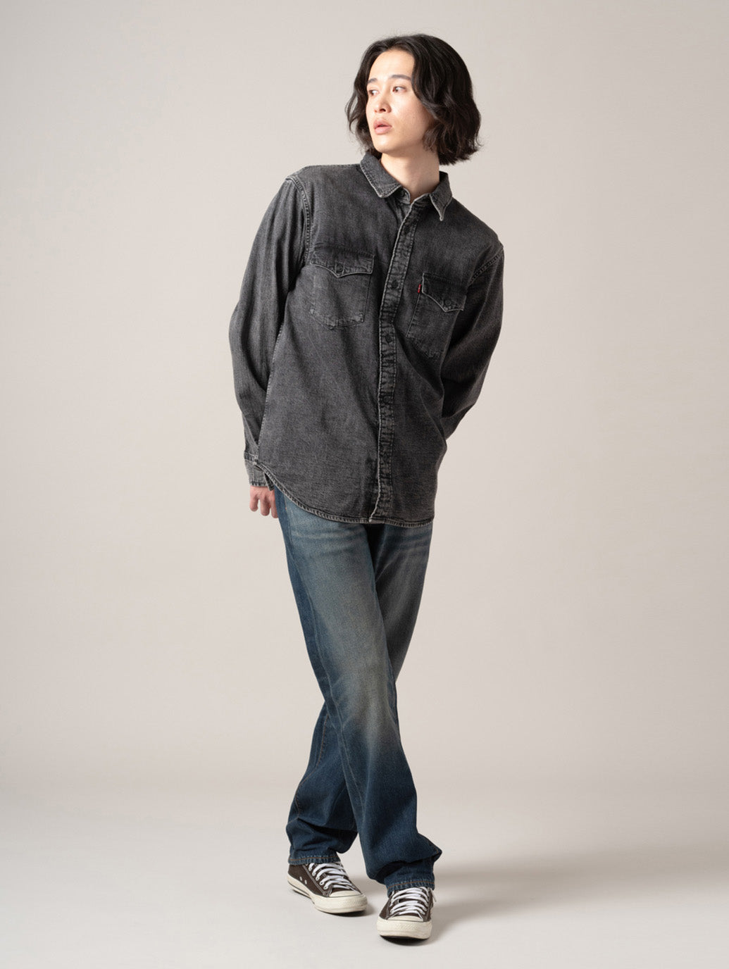 Levi's®の定番アイテムの一つであるウエスタンシャツを現代的にアレンジしたリラックスフィットのウエスタンシャツ。爽やかで涼しげな印象を与えてくれるライトカラーのボディに衿部部のみベージュカラーの切り替えしのデザインでTシャツやスウェットの上に羽織るアイテムとして活躍する一着です。 model:181cm B89 W68 H83 着用サイズ:L
