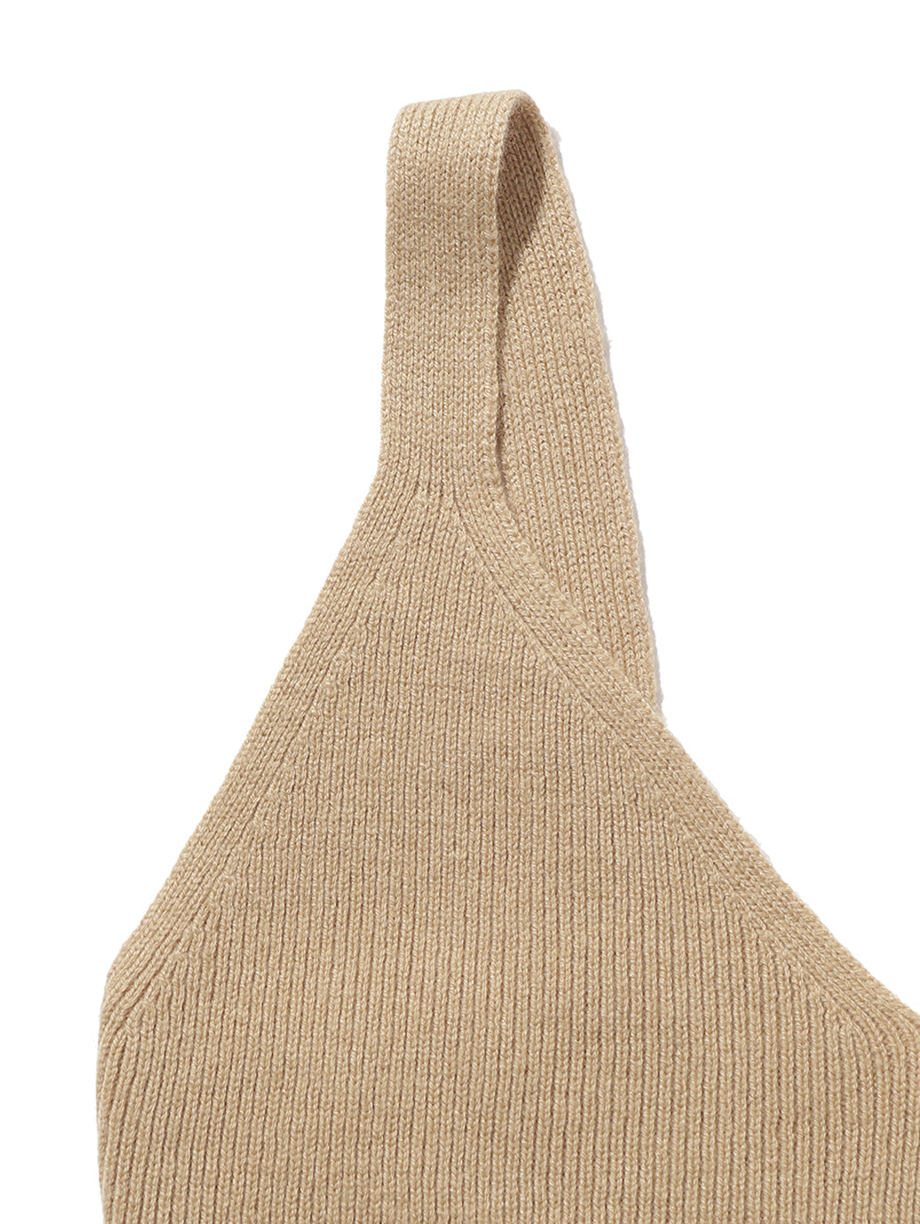 快適なウール混紡素材で、体型にフィットするニットビスチェ。ゆったりとしたトップスやジャケット、ブレザーなどに合わせるのがおすすめです。トレンド感の強い肌見せアイテムです。素肌をキレイに見せるカラーでどんなもんなものとも相性抜群。