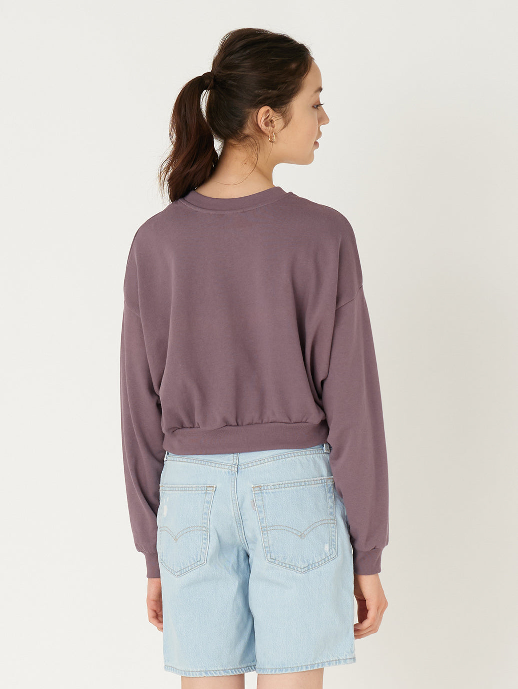 トレンドのショート丈にデザインされたスエットはありそうでなかった一枚。どんなボトムスとも相性抜群の一着です。
