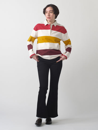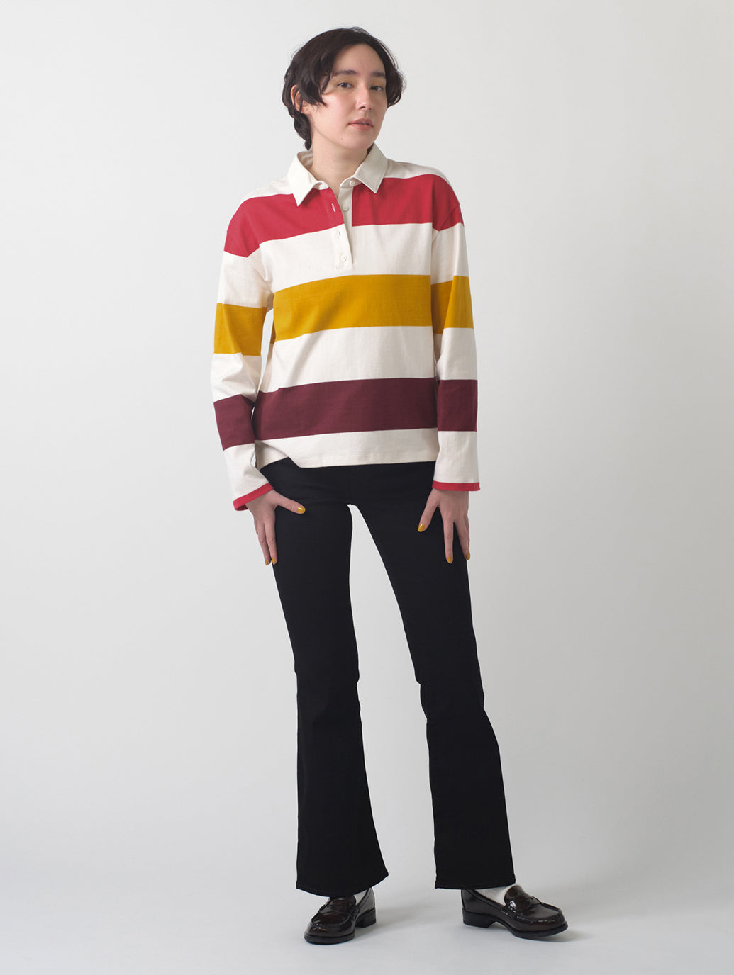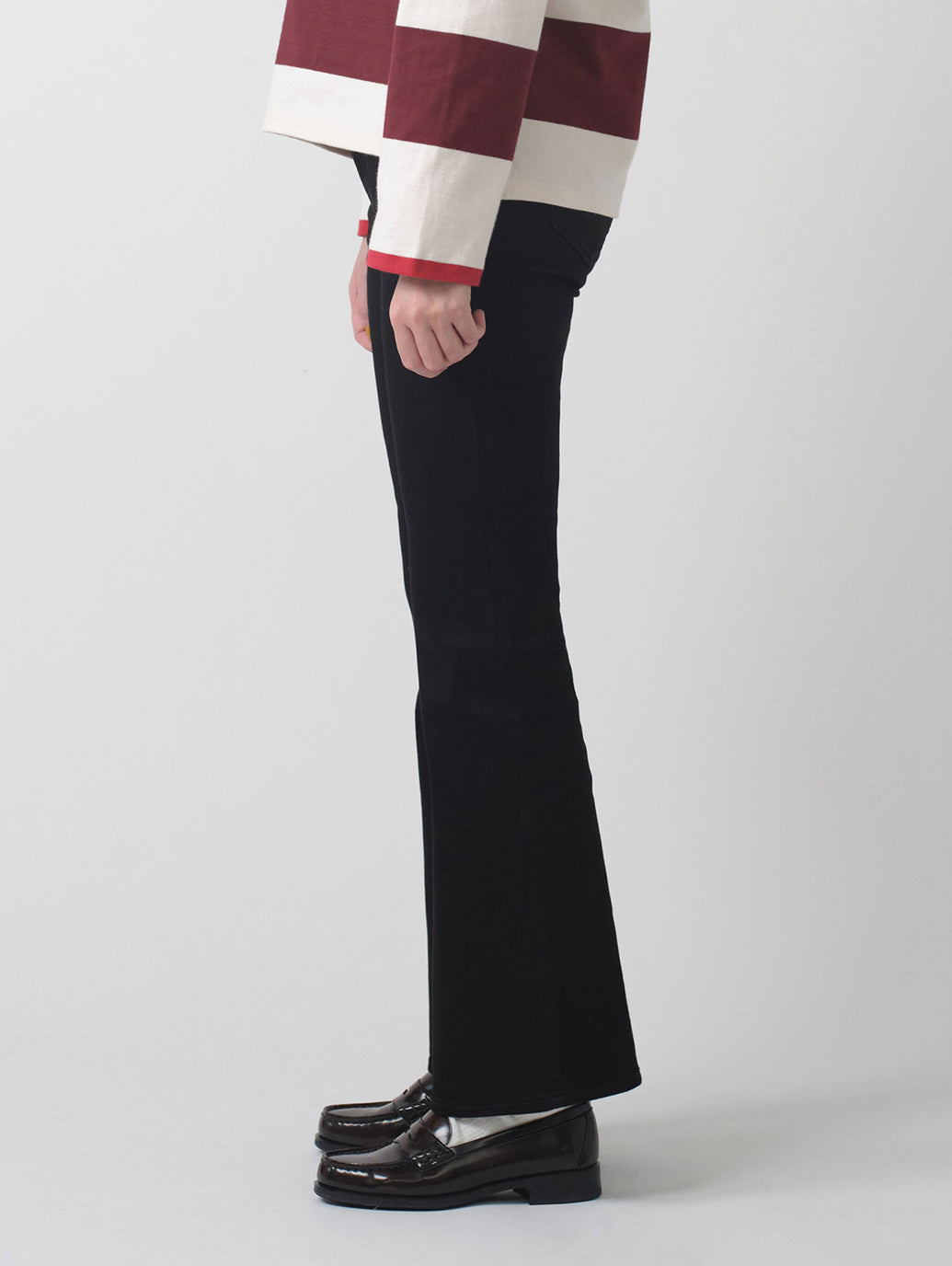 ハイウエストのブーツカットジーンズが登場しました。脚を美しく見せるクラシックな脚長シルエットが特徴的です。高品質のストレッチ素材を採用し一日中快適な穿き心地でありながら、ストレッチ性の高い素材を採用しています。一年中大活躍の一本です。