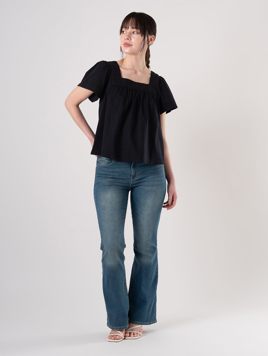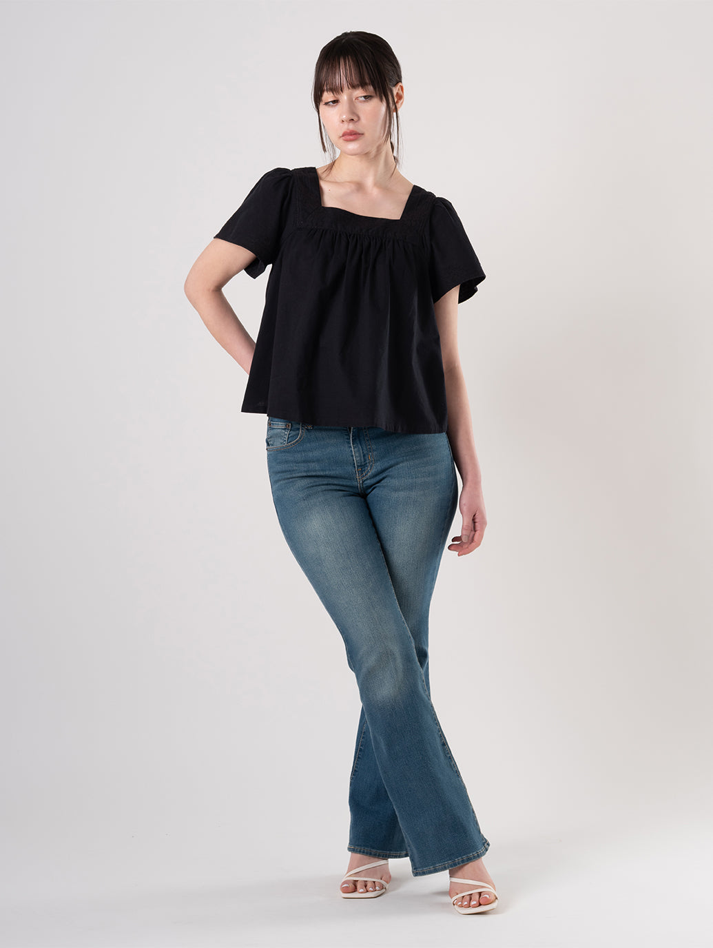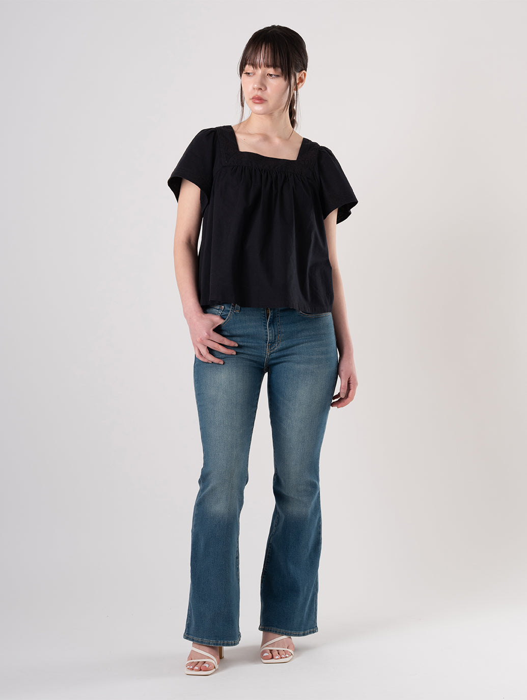ハイウエストのブーツカットジーンズが登場しました。脚を美しく見せるクラシックな脚長シルエットが特徴的です。高品質のストレッチ素材を採用し一日中快適な穿き心地でありながら、ストレッチ性の高い素材を採用しています。一年中大活躍の一本です。