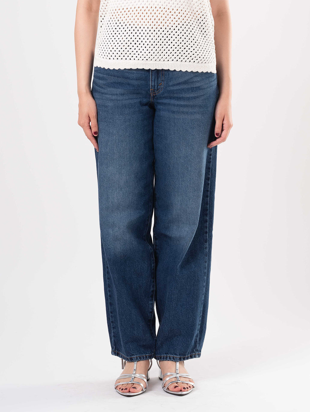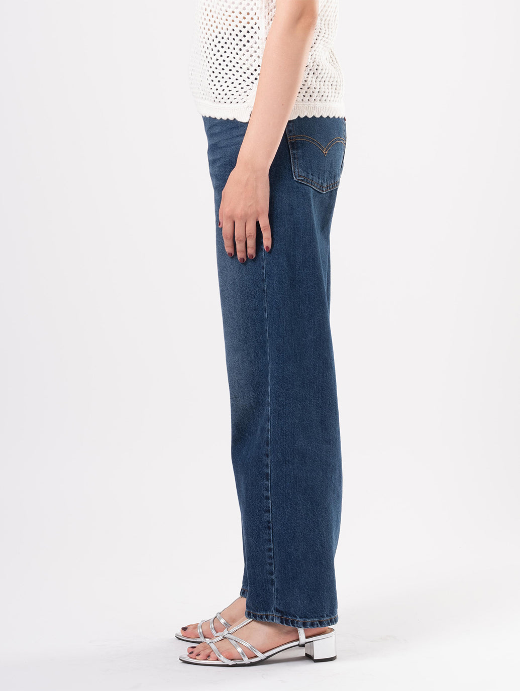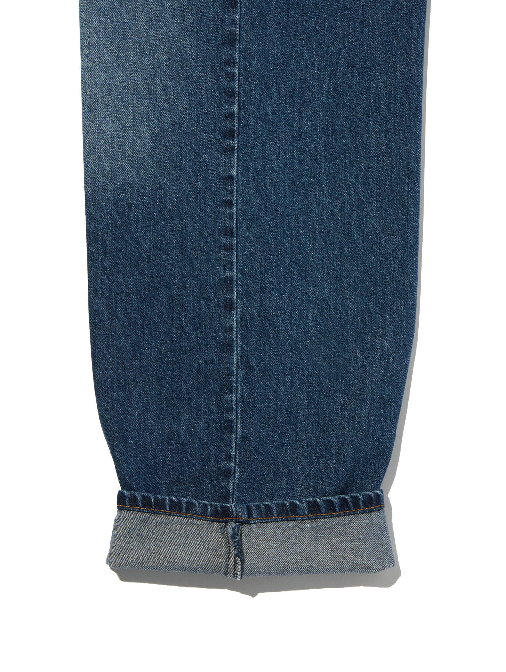 綿100%のリラックス感あふれるミッドライズストレートフィットは、ゆったりしながらも美しいシルエットをキープ。ダークインディゴの深みのある色味に、さりげない色落ち加工を施し、こなれた抜け感を演出。