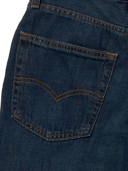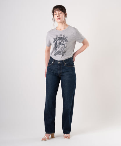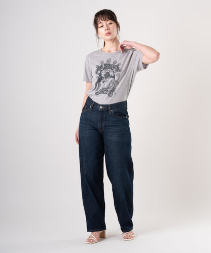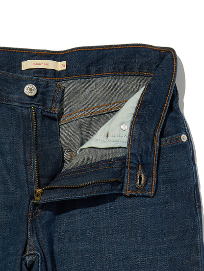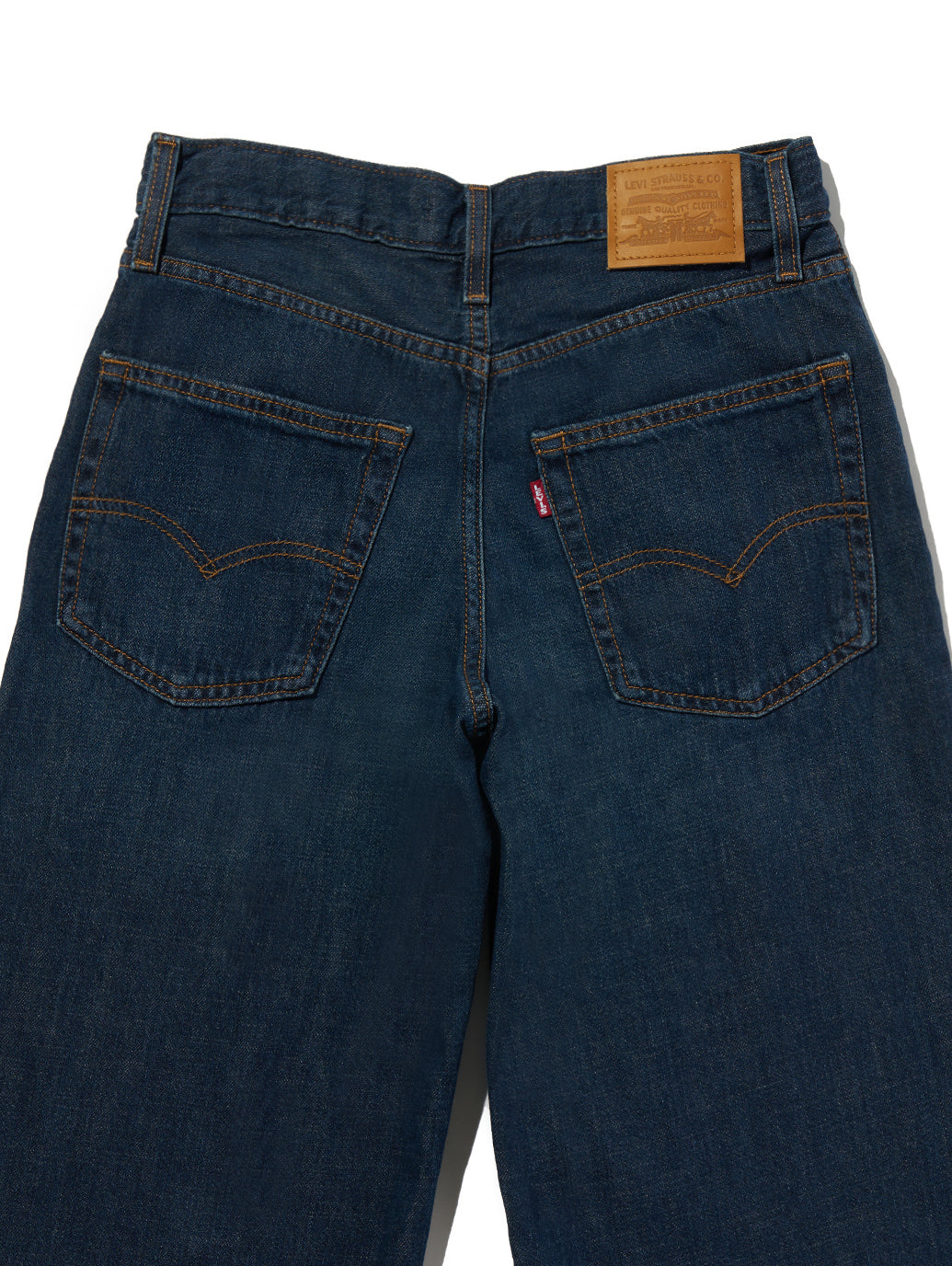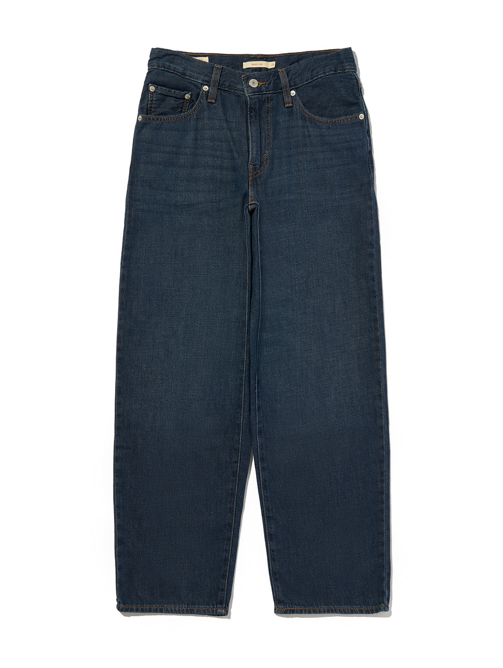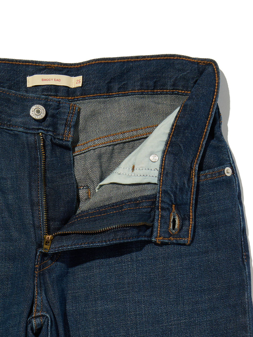 お父さんから借りたジーンズよりもバギーなジーンズがトレンドのカラーでデザインされました。リラックス感のあるミッドライズのストレートレッグジーンズ。余裕を持たせ、さりげなくエッジィな雰囲気にすることで、ゆったりしながらもシルエットが引き立ちます。お気に入りのスニーカーと合わせれば、いつでもクールな90年代のルックを楽しめます。どんなトップスとも相性抜群のこれからの季節にピッタリなダークカラーで登場しました。