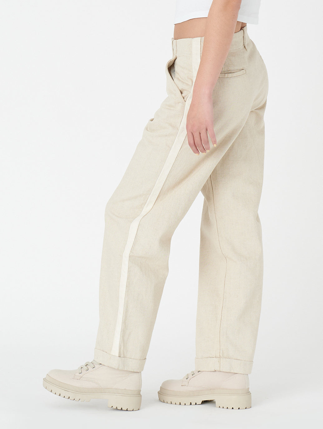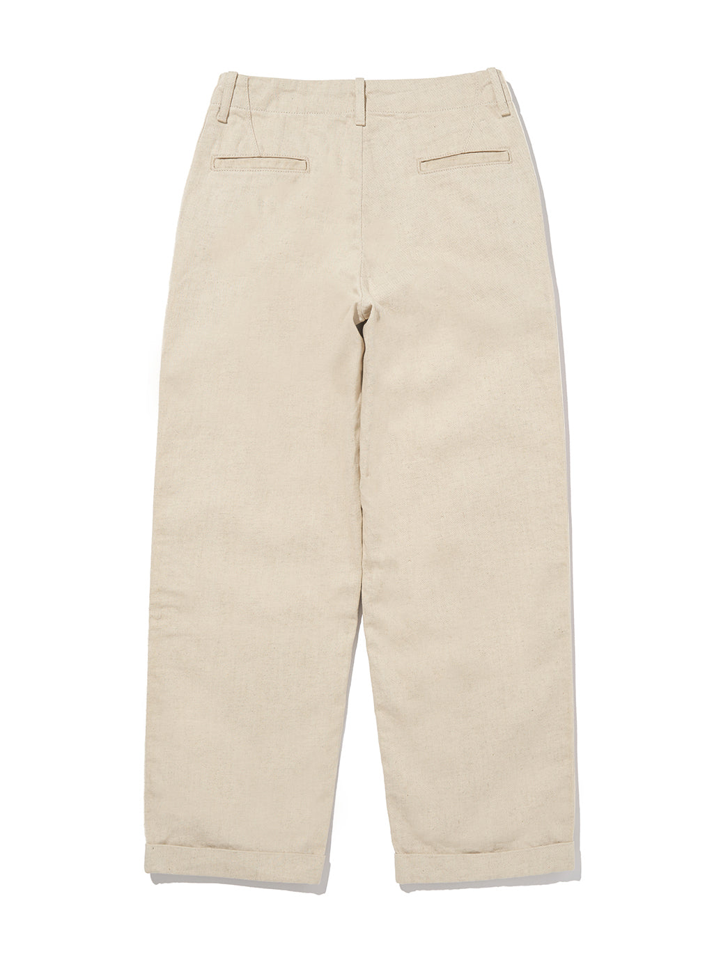 オーガニックコットンを使用したリラックストラウザーは、落ち着いたデザインと、いつまでもはき続けられる定番シルエットが魅力です。さらに、はき続けることで魅力が増します。