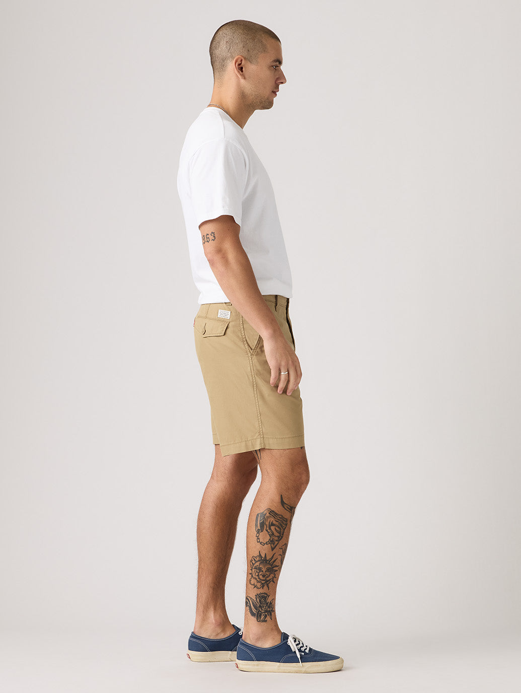 夏の定番アイテムが登場しました。股周りがゆったりとして、膝上ぐらいの少し短めのシルエットのデザインです。右のバックポケットにはフラップを施し、小物をしっかりと収納できる仕様になっています。Tシャツとサンダルとラフに合わせて夏のイベントに活躍間違いなしのアイテムです。カラー違いで欲しくなる一本です。