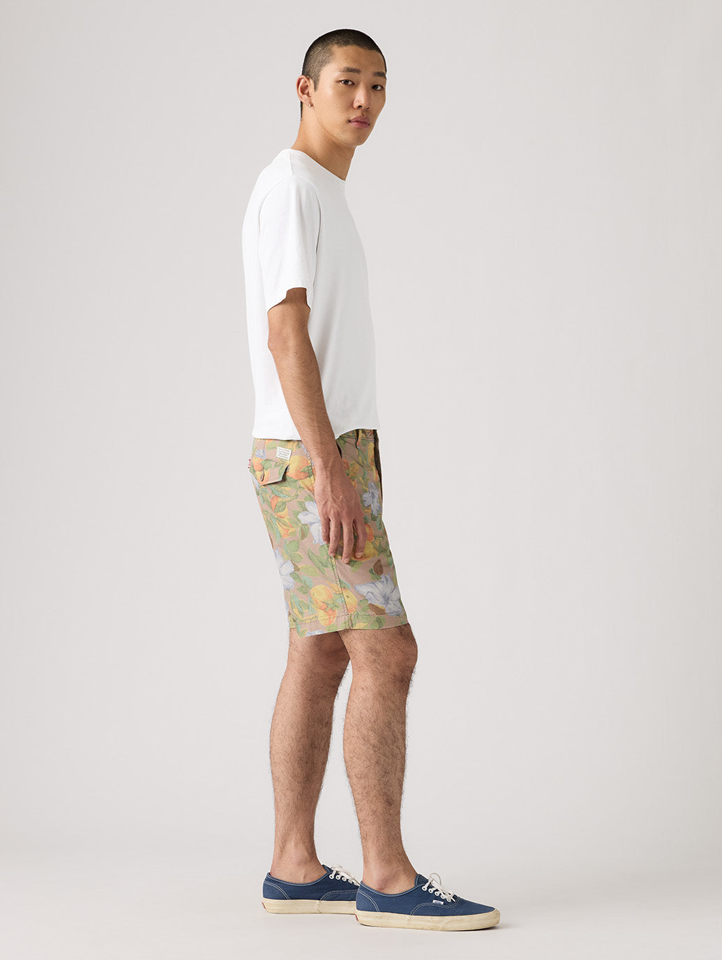 夏の定番アイテムが登場しました。股周りがゆったりとして、膝上ぐらいの少し短めのシルエットのデザインです。右のバックポケットにはフラップを施し、小物をしっかりと収納できる仕様になっています。Tシャツとサンダルとラフに合わせて夏のイベントに活躍間違いなしのアイテムです。カラー違いで欲しくなる一本です。