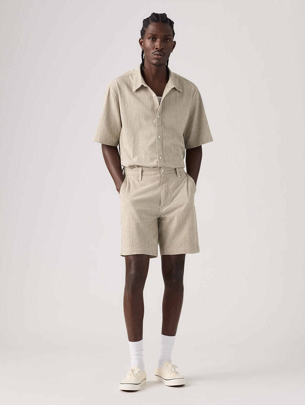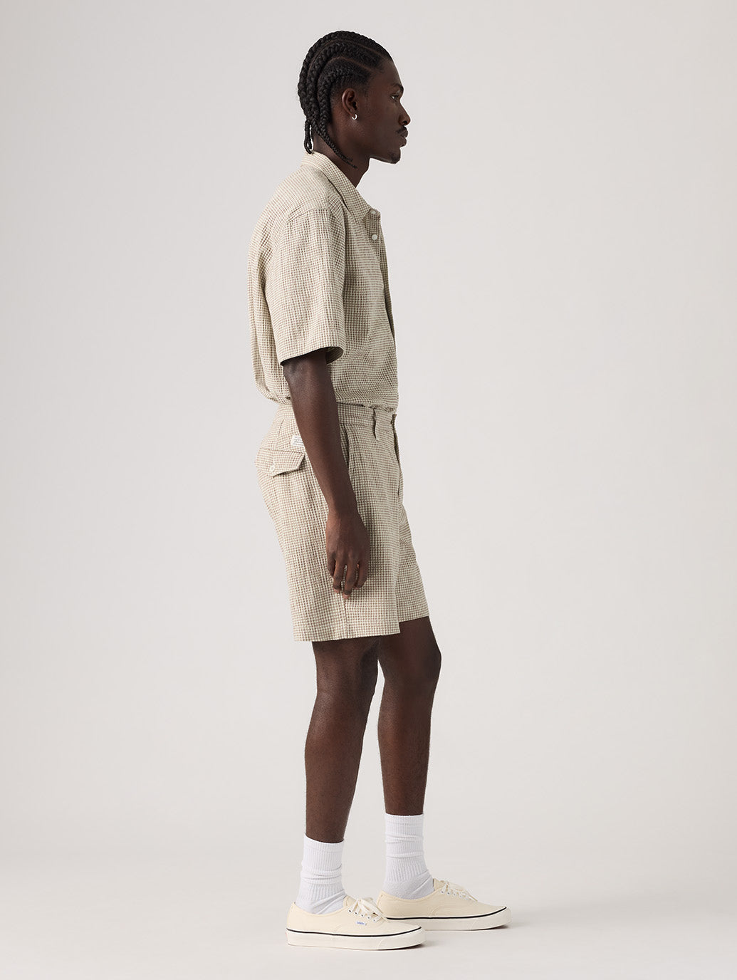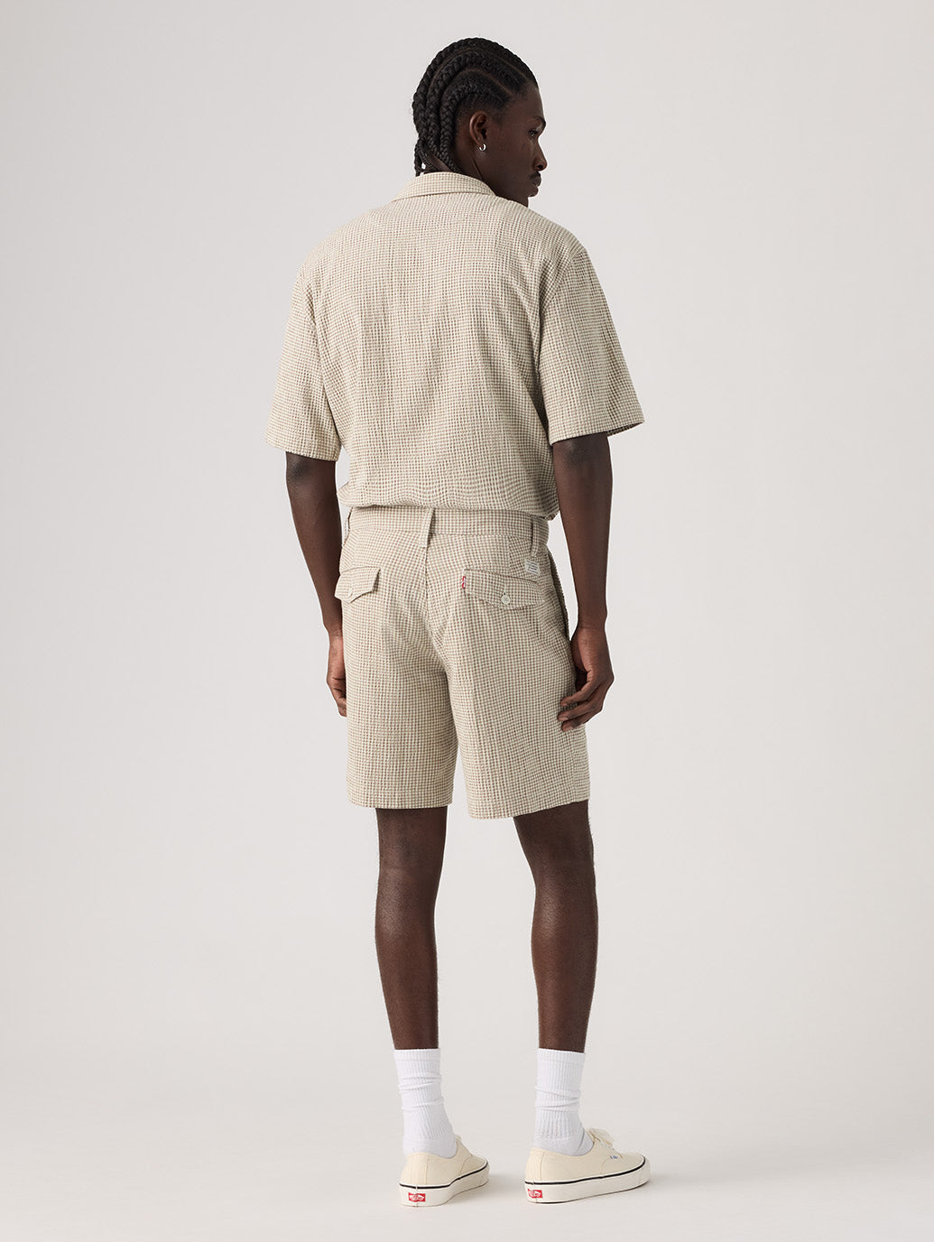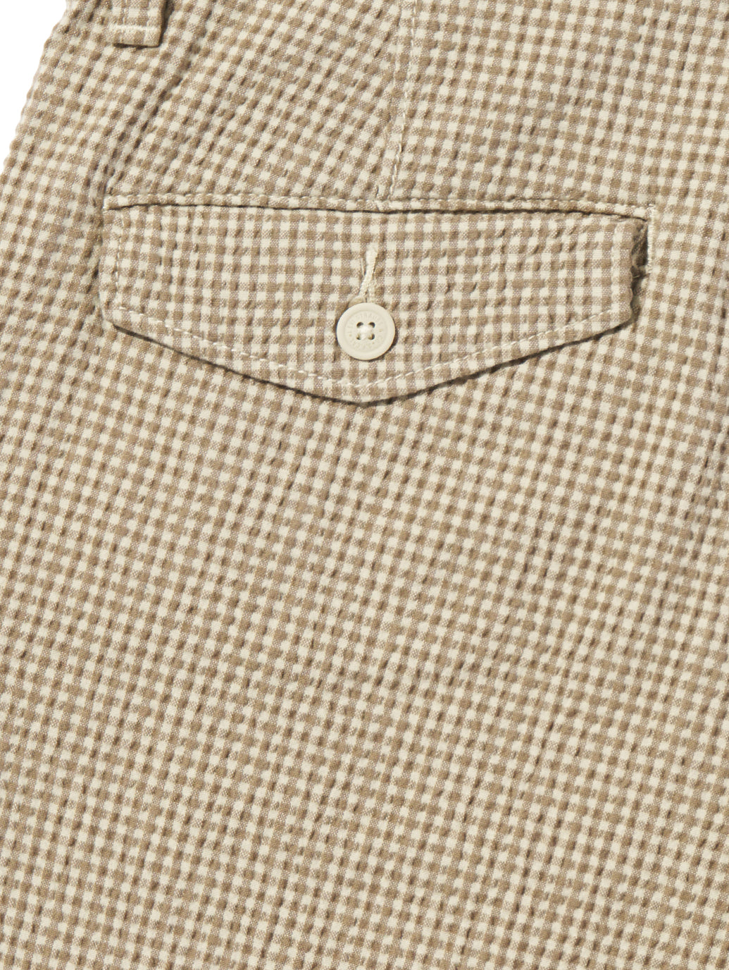 夏の定番アイテムが登場しました。股周りがゆったりとして、膝上ぐらいの少し短めのシルエットのデザインです。右のバックポケットにはフラップを施し、小物をしっかりと収納できる仕様になっています。Tシャツとサンダルとラフに合わせて夏のイベントに活躍間違いなしのアイテムです。カラー違いで欲しくなる一本です。