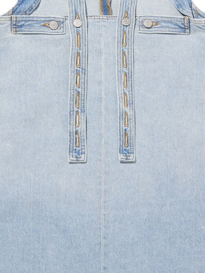 太陽が降り注ぐカリフォルニアの風景へのオマージュを込めたこのコレクションでは、ディストレスト感があるライトウォッシュのデニムを用意しました。ERLのイマジネーションが生み出したフォルムとテクスチャーがLevi’s®の象徴的なシルエットと融合して、2つのブランドのヘリテージと、それぞれの「今らしさ」を表現しています。コレクションのキャンペーンは、カリフォルニアの過去と未来をつなぐ自由奔放なスピリットをテーマにしました。撮影したのは、写真家としての経歴を持つイーライ・ラッセル・リネッツ本人です。ビジュアルには、イーライの兄弟や親友たちなど様々な人たちが登場しています。