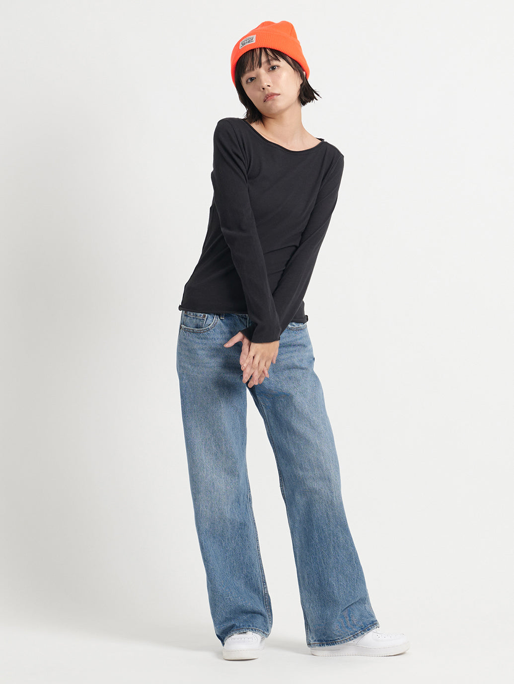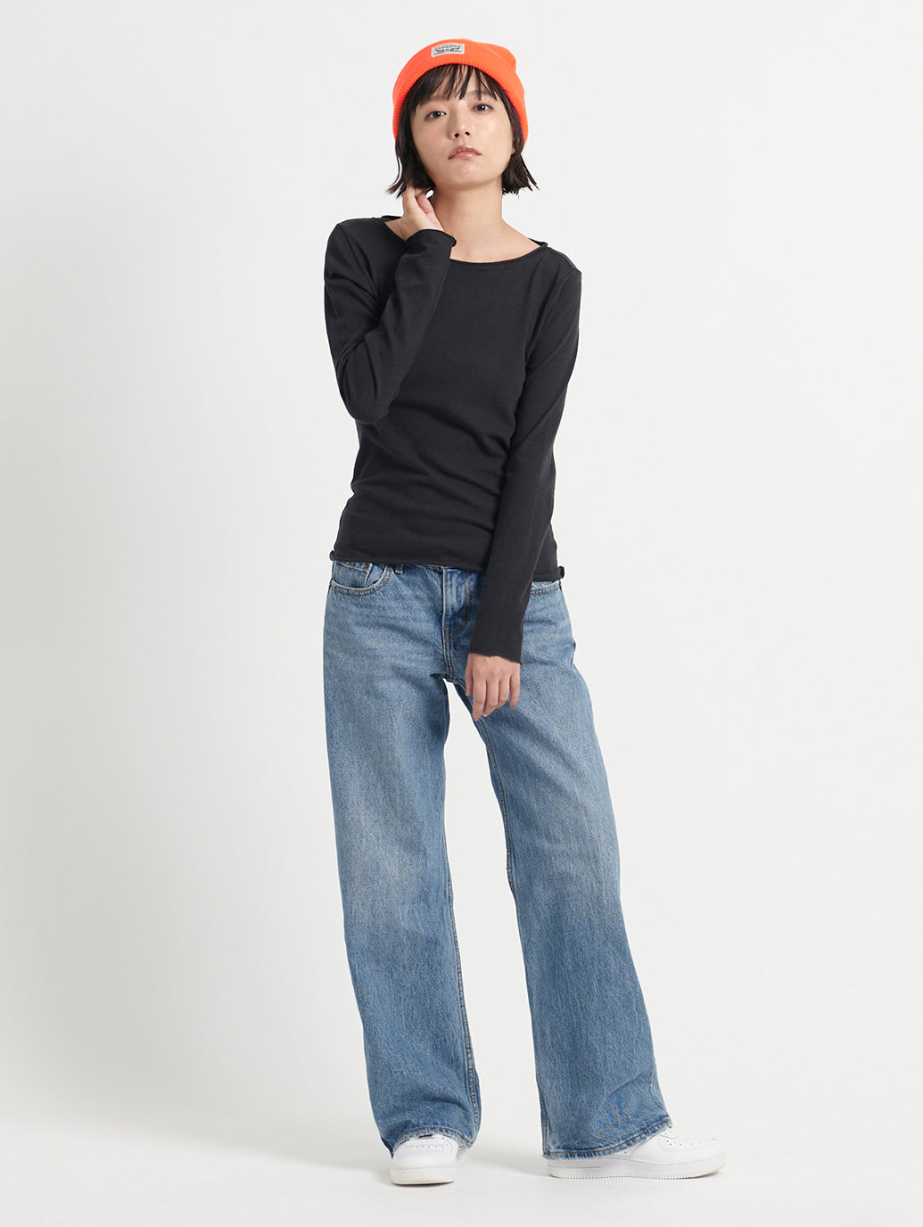 幅広い着回しができるローライズ、ストレートレッグはレトロなY2Kのスタイルにもってこいです。さりげないルックなので日常的に着られる万能アイテムです。色違いで欲しくなる一本です。