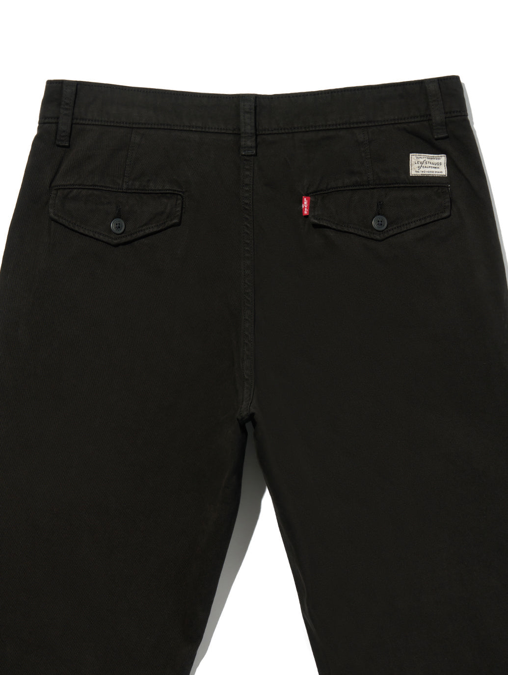 ストレートレッグのソフトなパンツで、腿にかけてきれいなレギュラーフィットスタイルです。綿100%のしっかりとした生地、ブラックカラーでシンプルなトップスと合わせておしゃれ感が出ます。