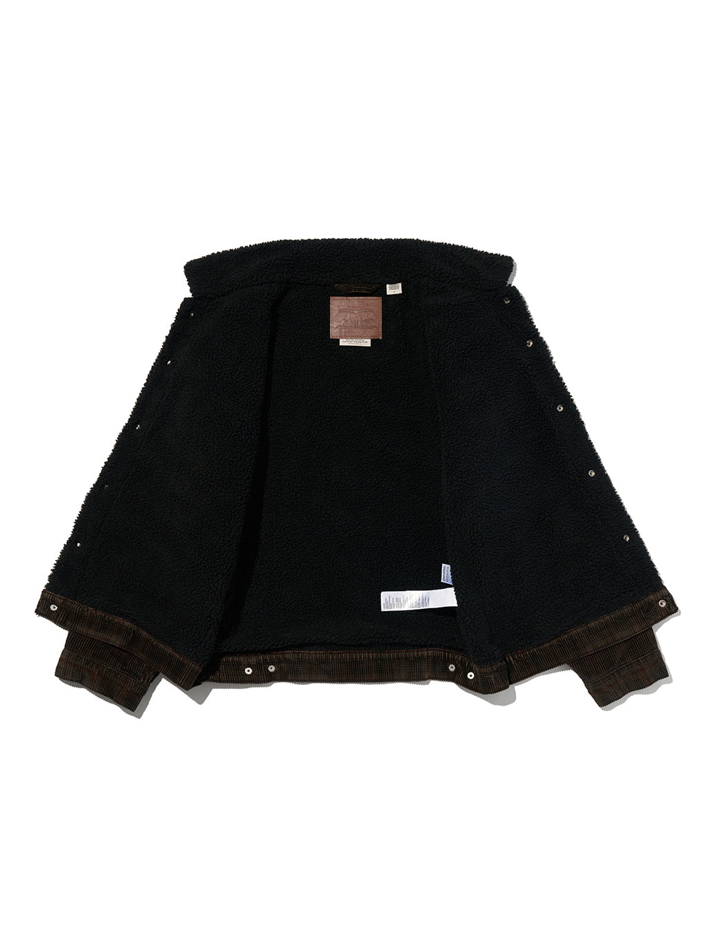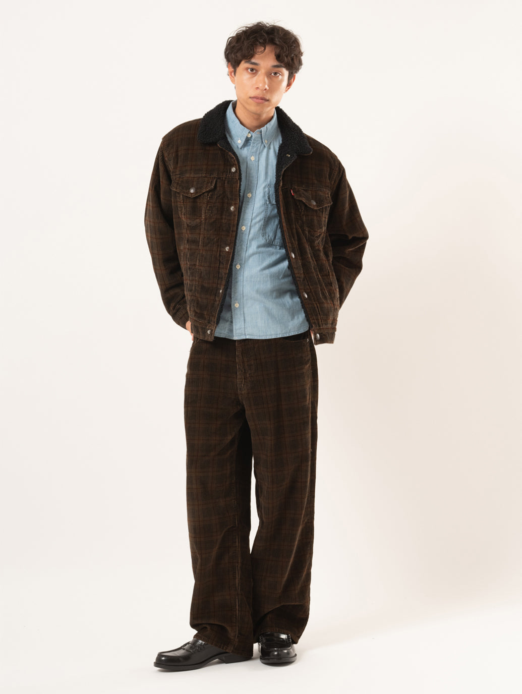 1967年から続くLevi’s®の定番アイテムの一つであるトラッカージャケットのより快適なバージョン、シェルパ・トラッカージャケット。コーデュロイ素材を使用し、裏地にはふわふわのシェルパをあしらい、保温性を高めています。