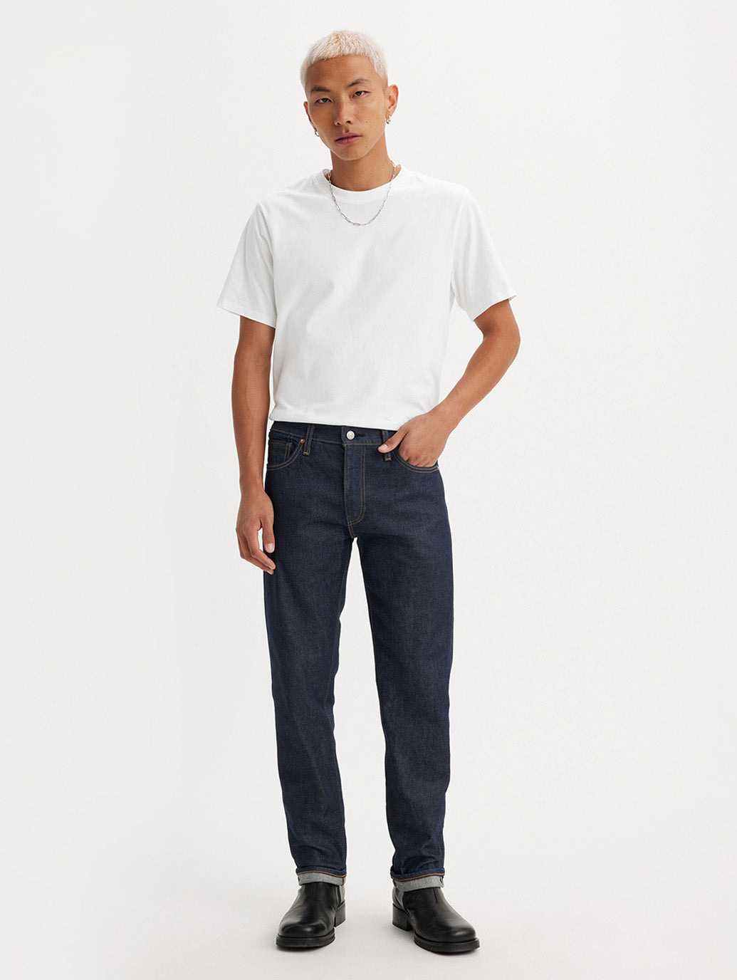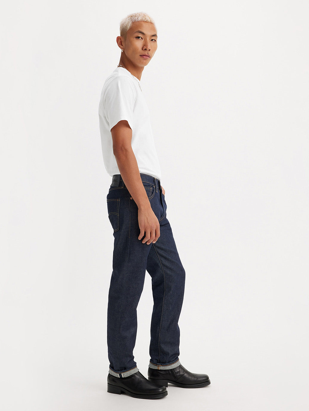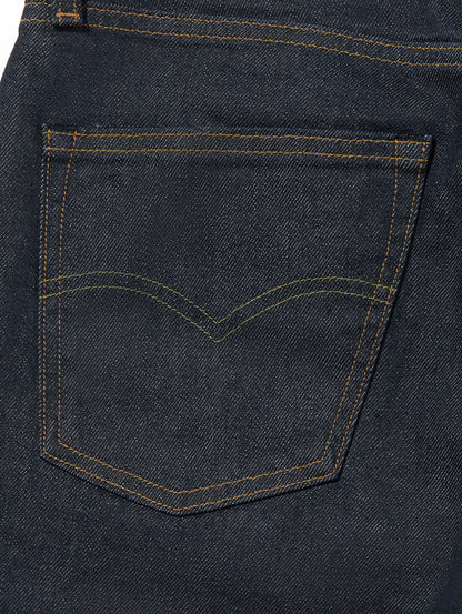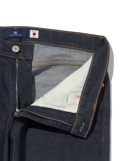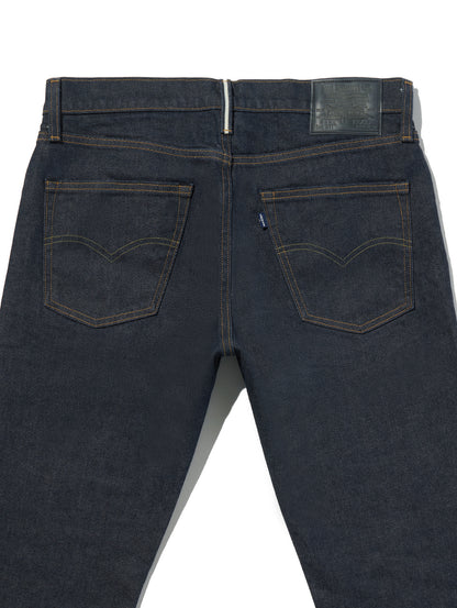 リーバイス®のベーシックシルエットの一つで、ストレートとスキニーの中間に位置するスタンダードなスリムフィット。ストレッチ入りで伸縮性のあるリンスカラー、浅めの股上なので、股下から裾にかけてきれいなシルエットが出やすいのが特徴です。最高級の日本製の青みが強く光沢感のあるリンスカラーデニム生地、仕上げ、ディティールなど拘りの詰まった1本です。