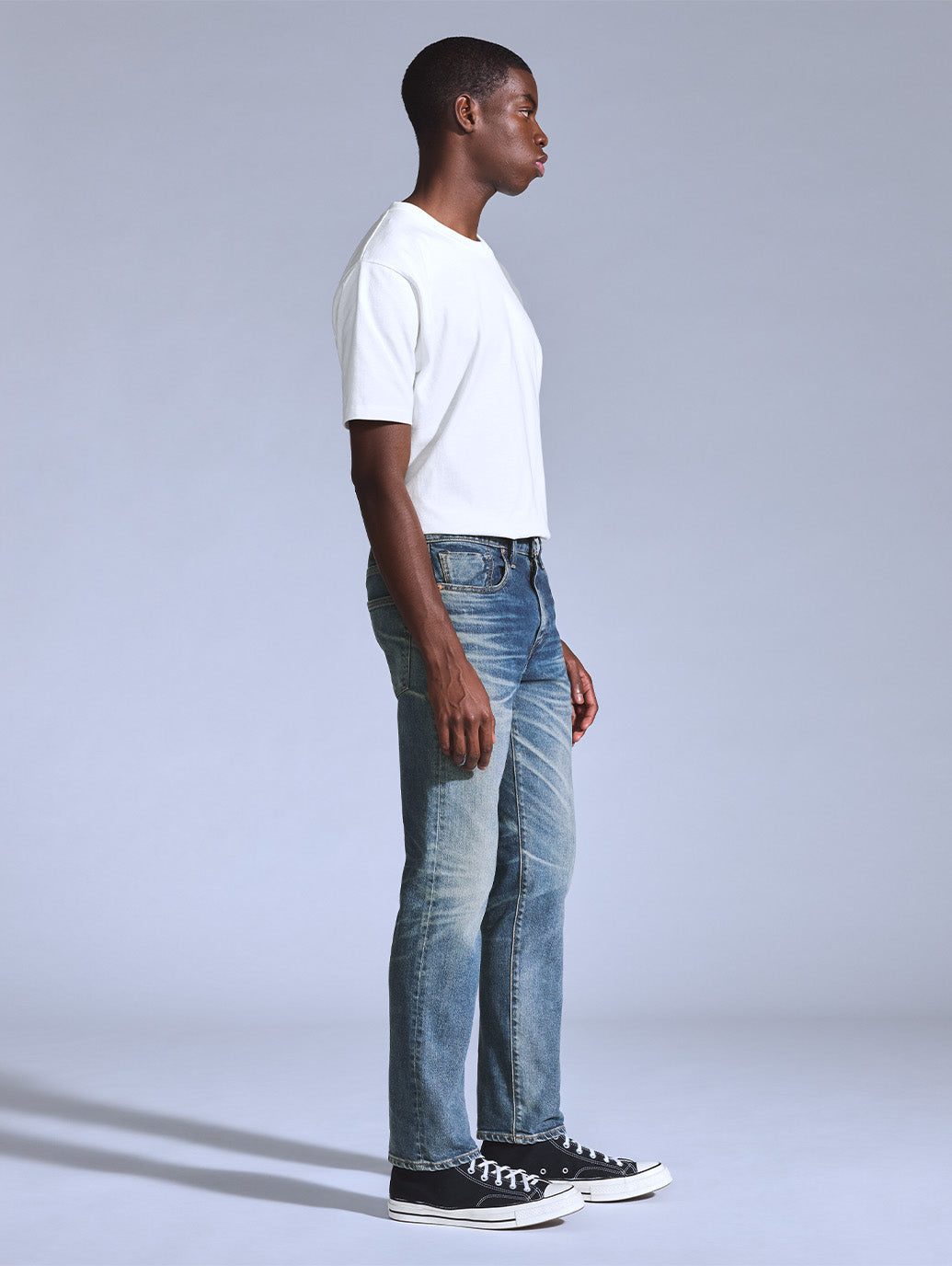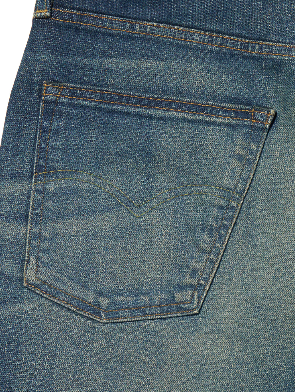 リーバイス®のベーシックシルエットで、元々は1967年に東海岸のスタイリッシュな人たちに向けてつくられたという歴史を持つフィット。裾に向かって細くなるキレイめなテーパードシルエット、程よい深さの股上、伸縮性のあるストレッチ素材を配合した生地が特徴です。最高級の日本製のデニム生地を使用した濃淡がしっかりと出た色味、仕上げ、ディティールなど拘りの詰まった1本です。