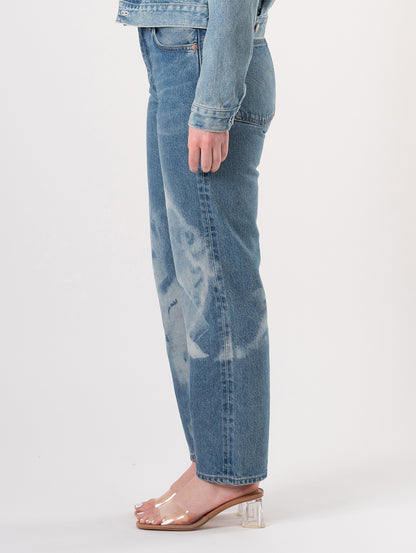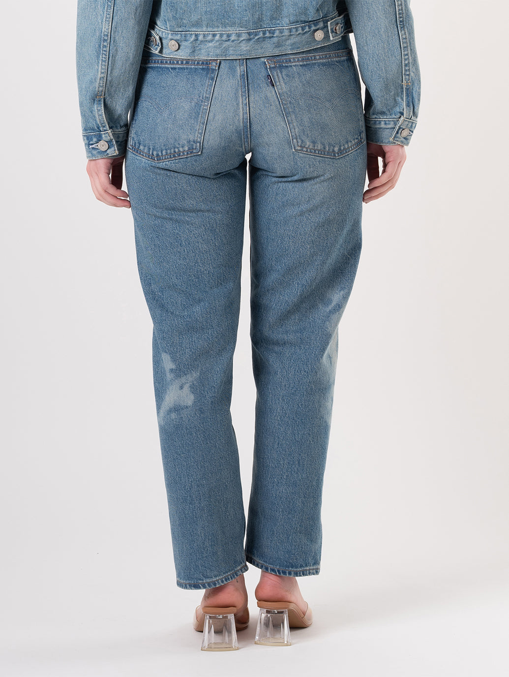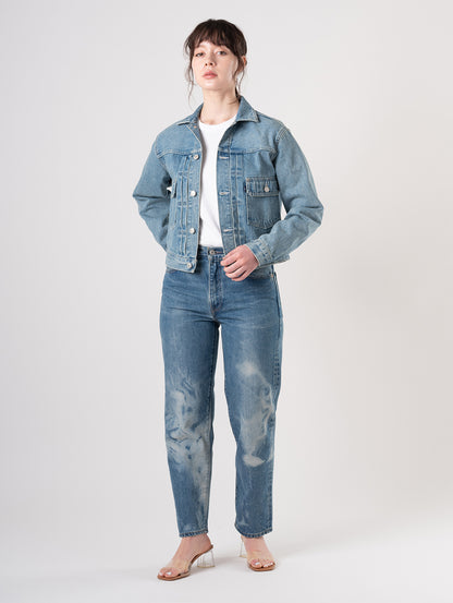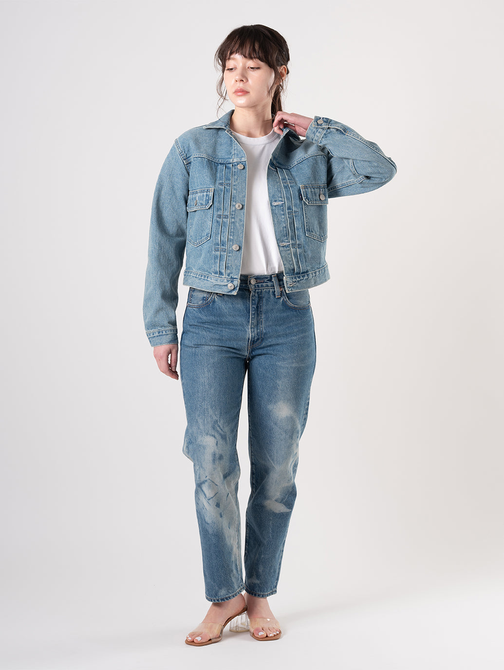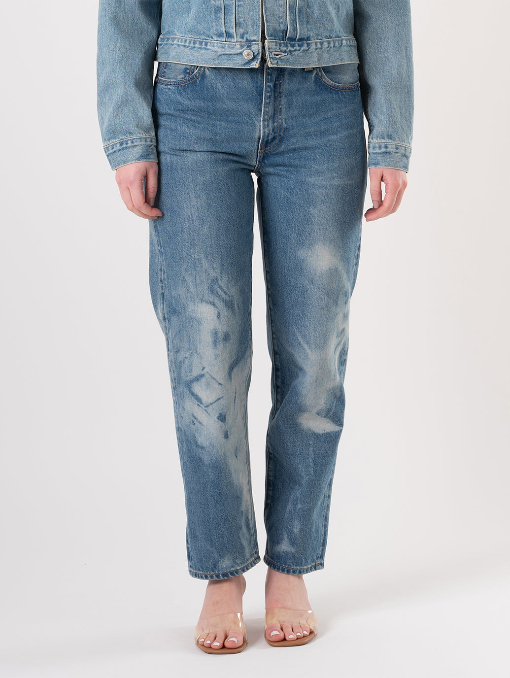 新しさとレトロな印象を兼ね備えたコラムパンツは、お父さんのスタイルからインスパイアされたアイテム。ストレートフィットでハイライズなデザイン。オーバーサイズのトラッカージャケットやクロップドセーターのプロポーションで遊ぶのにぴったりのフィットです。クラシックなライトウォッシュの最高級日本製デニム生地を使用し仕上げました。