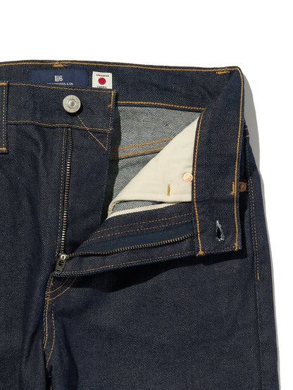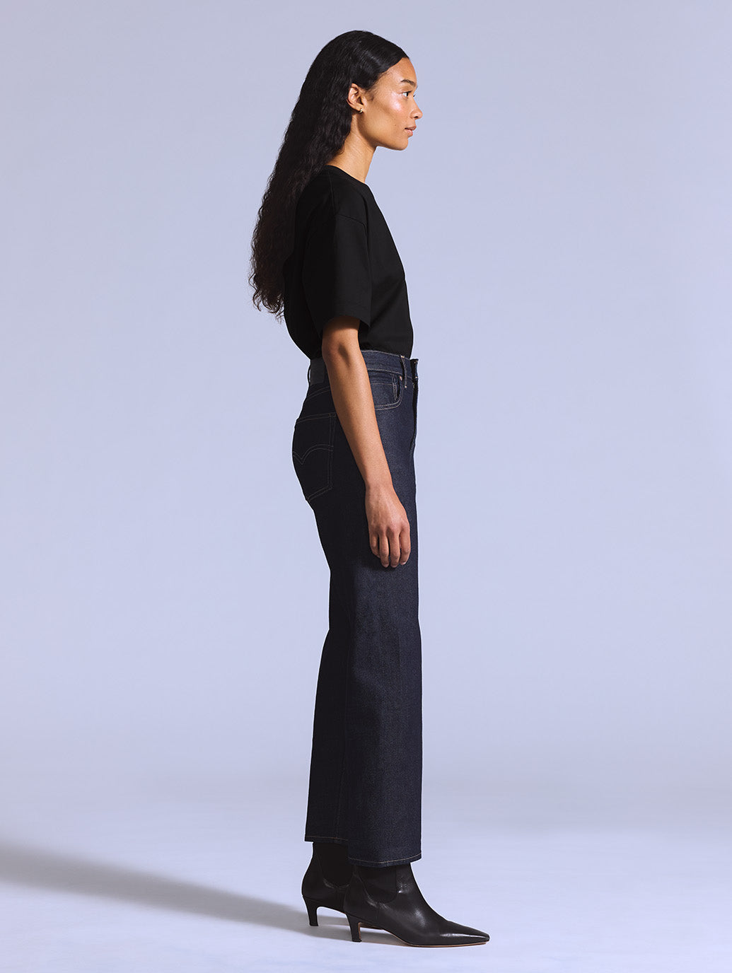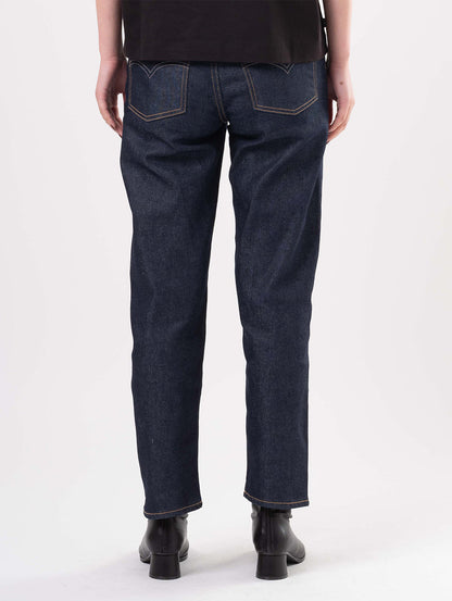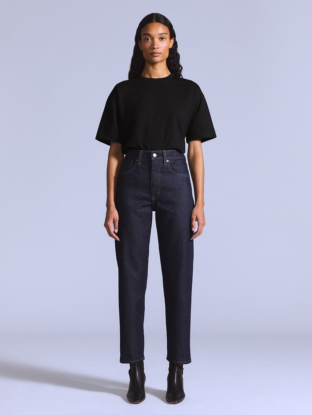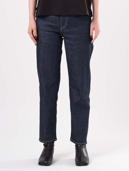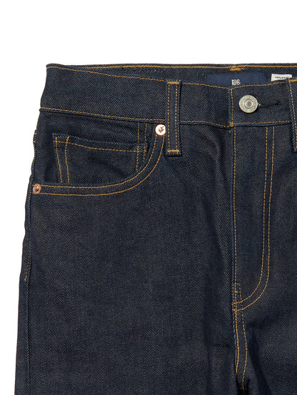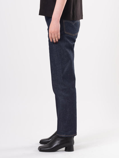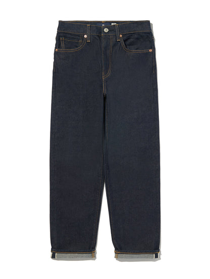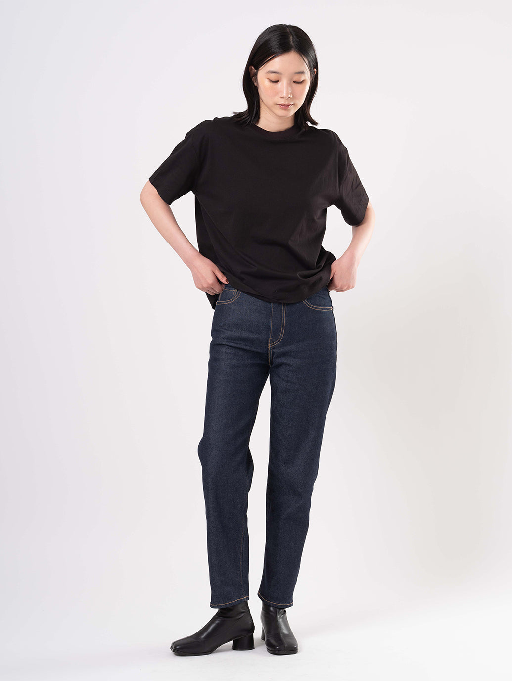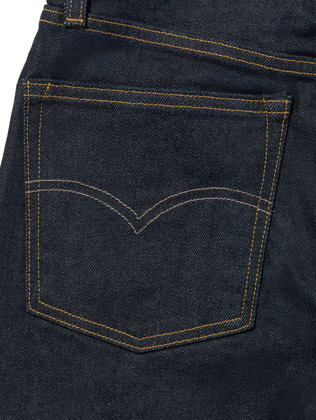 新しさとレトロな印象を兼ね備えたコラムパンツは、お父さんのスタイルからインスパイアされたアイテム。ストレートフィットでハイライズなデザイン。オーバーサイズのトラッカージャケットやクロップドセーターのプロポーションで遊ぶのにぴったりのフィットです。クラシックなインディゴウォッシュの最高級日本製デニム生地を使用し仕上げました。