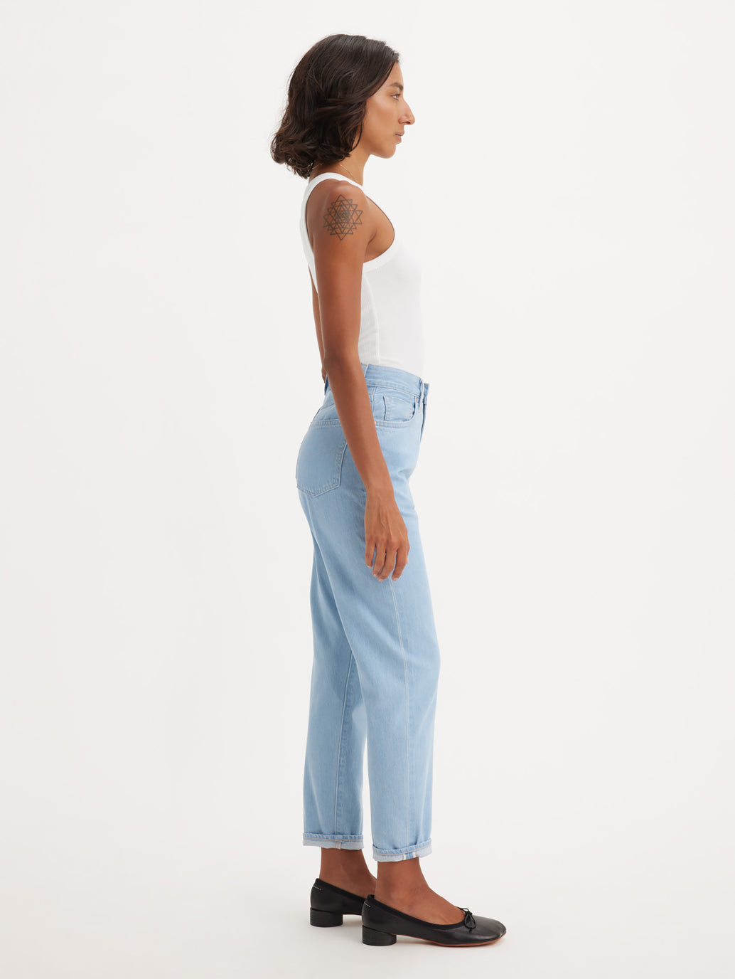 男の子から借りたストレートフィットを完璧なレディースバージョンでデザインしました。プレミアムなデニム生地を生産することで世界に名を馳せるカイハラ社のセルビッジデニムを使用。ハイクオリティな生地は穿くほどに魅力を増し、長くご愛用いただけます。バックベルトループにもセルビッジを使用して高級感のあるデザインに仕上げました。同じカラーのセットアップでもお楽しみいただける一本です。