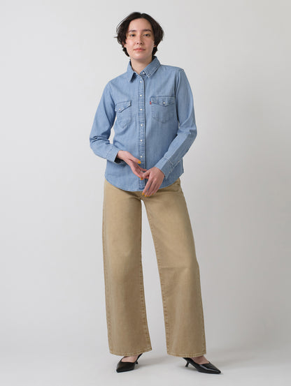 人気のシルエットのRIBCAGEにトレンドのワイドレッグが登場しました。70年代の脚を長く見せるテイラー仕立てのルックと90年代風のスーパーハイライズを組み合わせた、ライズとウエストラインを強調する完璧なバランスのデザインです。驚異的な12インチライズのRIBCAGEはヒップをスリムに見せ、ウエストを強調し、脚を長く見せてくれるジーンズです。個性的なカラーをお探しの方にピッタリの一本です。