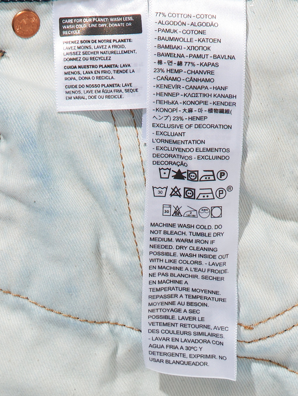 フィットには、90年代のスタイルからインスピレーションを受けた”568″、通称”STAY LOOSE”をピックアップ。全体的にゆとりのあるルーズフィットで、膝から裾にかけて緩やかにテーパードしたシルエットのデニムパンツを、洗いをかけたダークインディゴカラー(コットン77%/ヘンプ23%)のネップ感のある生地に別注いたしました。ヘンプを使用することで生産時の水の使用量を抑えることができるサスティナブルなプロダクトは、レトロクラシックな風合いと共に柔らかく快適な履き心地が特徴です。裾はチェーンステッチを施しパッカリングを表現、また全ウエスト共通で、レングス30で制作いたしました。