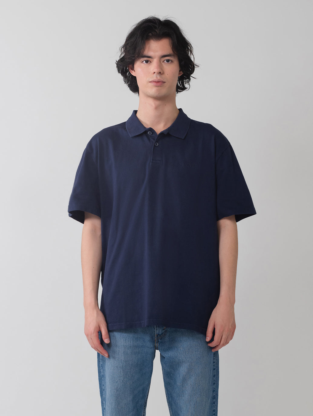 胸に同色でLevi's®ロゴが刺繍されたネイビーカラーのポロシャツ。綿100%でコシのある生地。暖かくなる春先にホワイトパンツやチノパンツに合わせていただきたい一枚です。