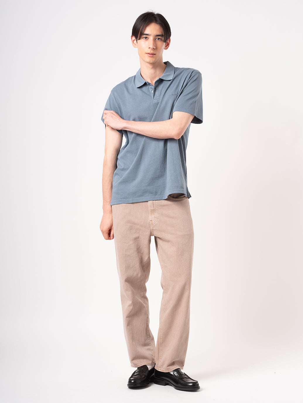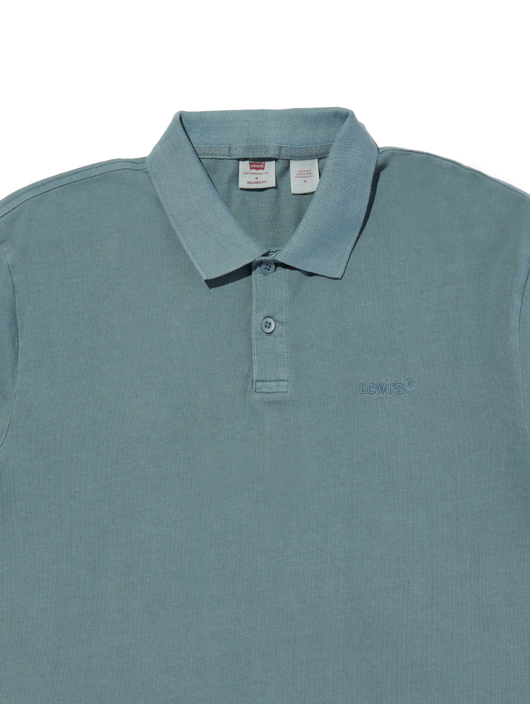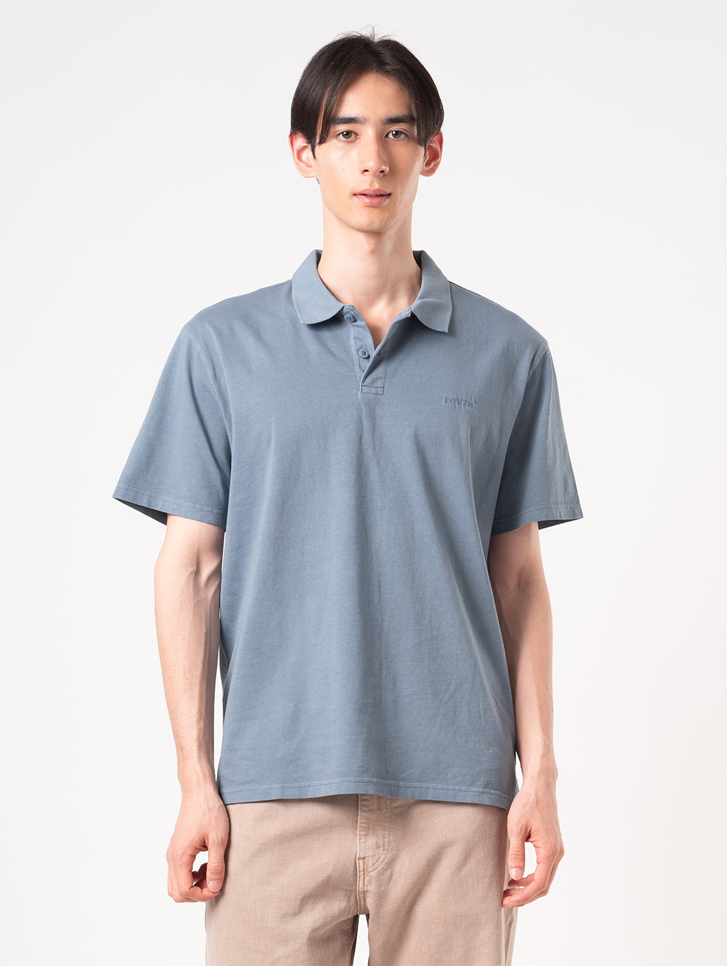 胸に同色でLevi's®ロゴが刺繍された洗いをかけたようなグリーンカラーのポロシャツ。綿100%でしっかりとした生地。春先から暖かくなる時期にジーンズやチノパンツに合わせていただきたい一枚です。