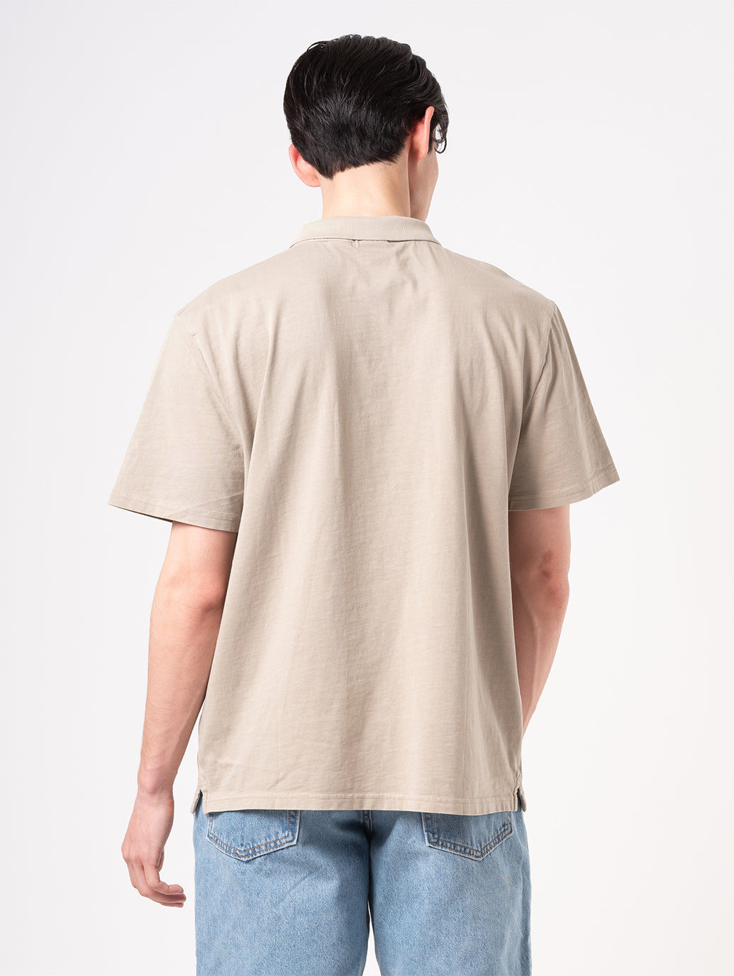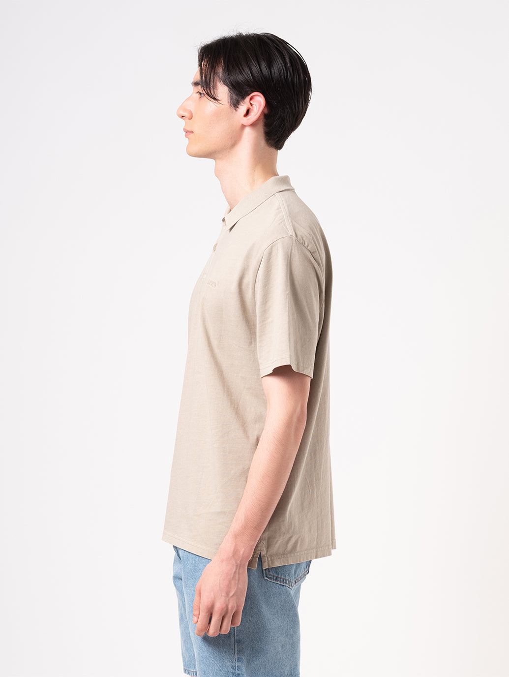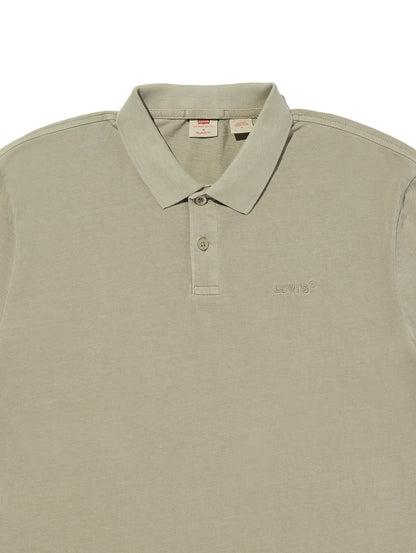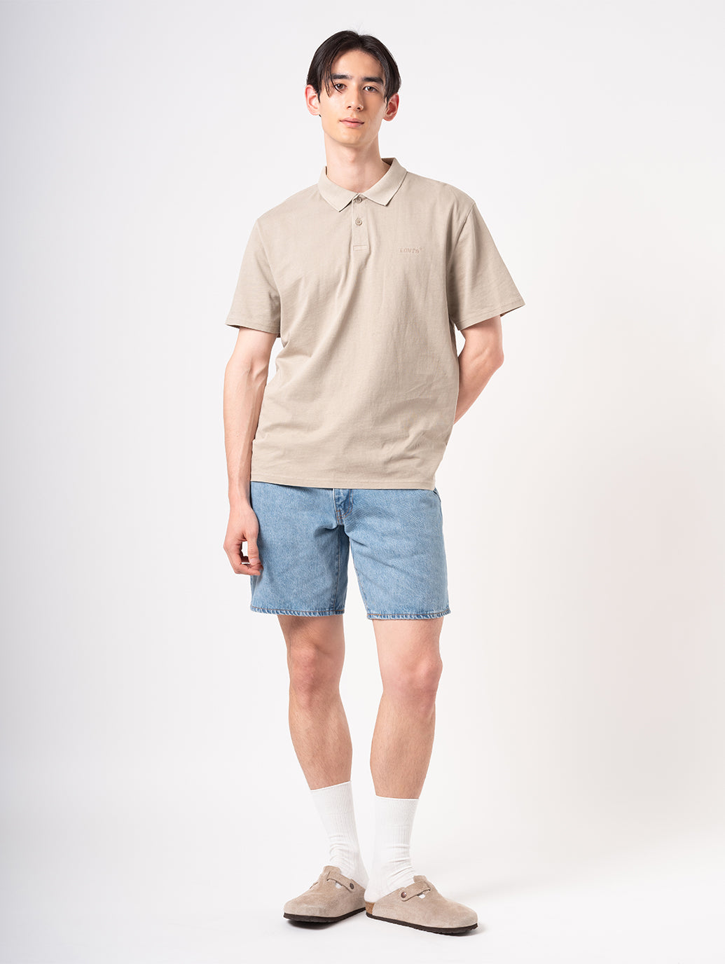 胸に同色でLevi's®ロゴが刺繍された洗いをかけたようなカーキカラーのポロシャツ。綿100%でしっかりとした生地。春先から暖かくなる時期にホワイトパンツやチノパンツに合わせていただきたい一枚です。