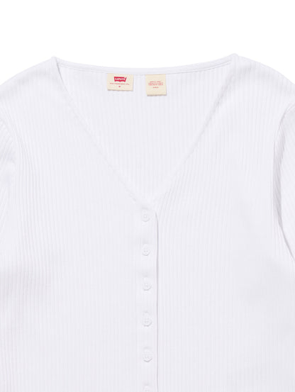 美しいVネックラインで体にフィットするスリムフィットにデザインされたトップスが登場しました。体のラインに寄り添いながらリブ編みにデザインされた一枚でどんなジーンズとの相性は抜群です。カラー違いで欲しくなる一枚です。