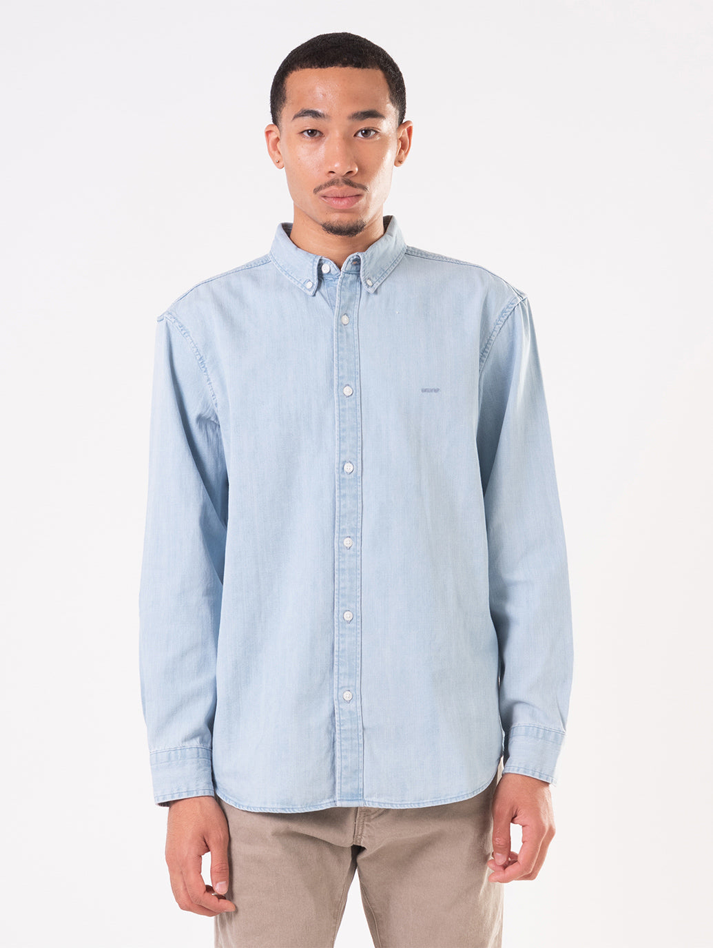 Levi's®が毎シーズンで展開しているボタンダウンシャツ。トレンドに合わせた身幅がゆったりとしたリラックスフィットを採用しました。さわやかなブルーのデニムカラーなので濃紺のデニムやチノと合わせてビジネスシーンにもおすすめのアイテムです。