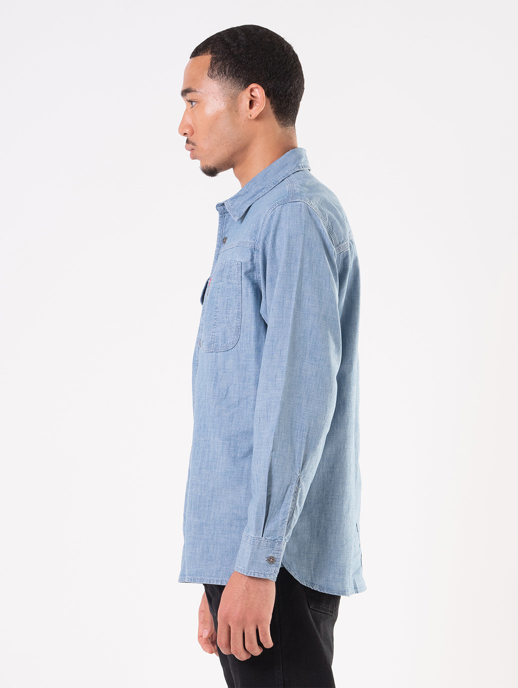 クラシックなシルエットを採用したボディにユーティリティポケットを配したデザインのワークシャツ。春先の定番でもあるシャンブレー生地なのでカジュアルにジーンズと合わるのは勿論、少しフォーマルにスラックパンツなどとの相性も良く、あらゆるシーンで活躍する一着です。