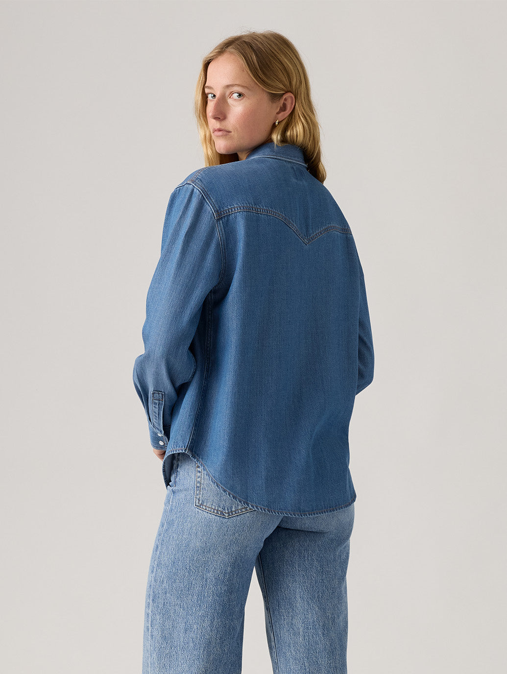 定番の ウエスタン シャツがデザインされました。クラシックなスナップボタン フロント、2 つのパッチ ポケット、リラックスしたフィット感、ウエスタン風のヨーク デザインを備え、ウエスタンの定番をフェミニンにアレンジしたものです。お気に入りのジーンズと合わせてこれからの季節のセットアップコーデをお楽しみください。