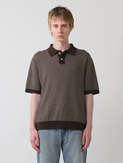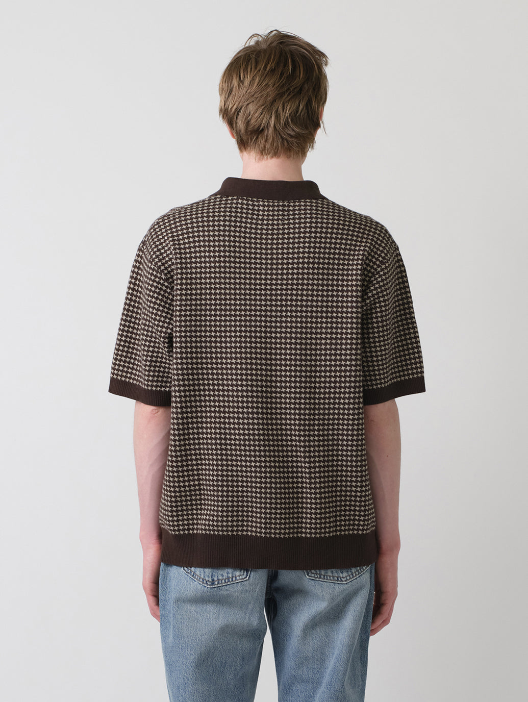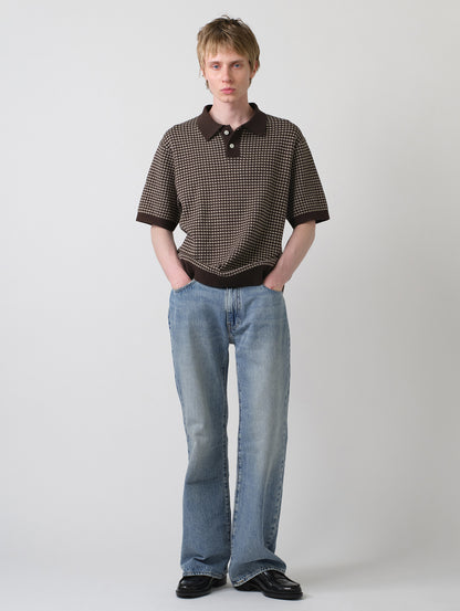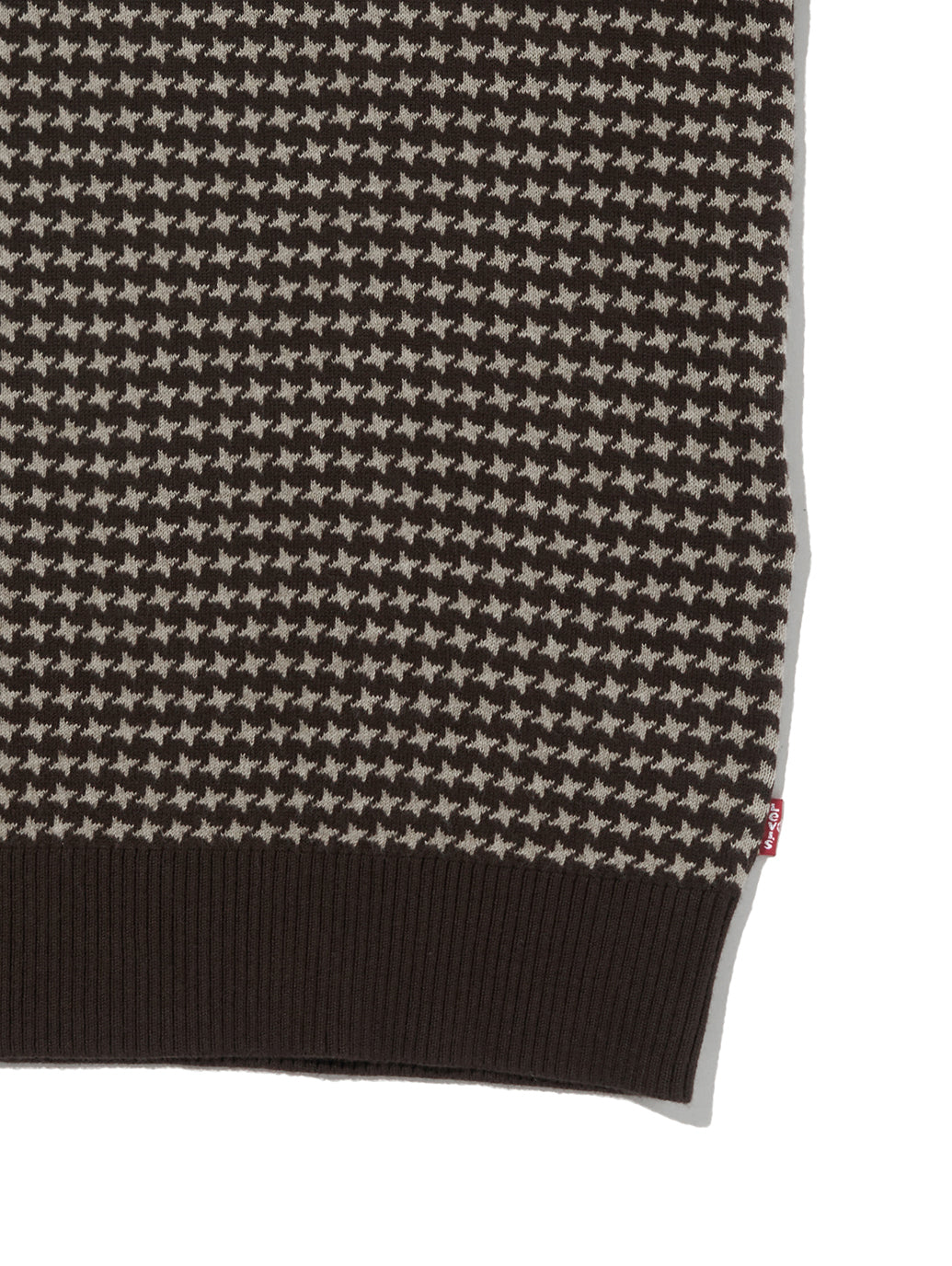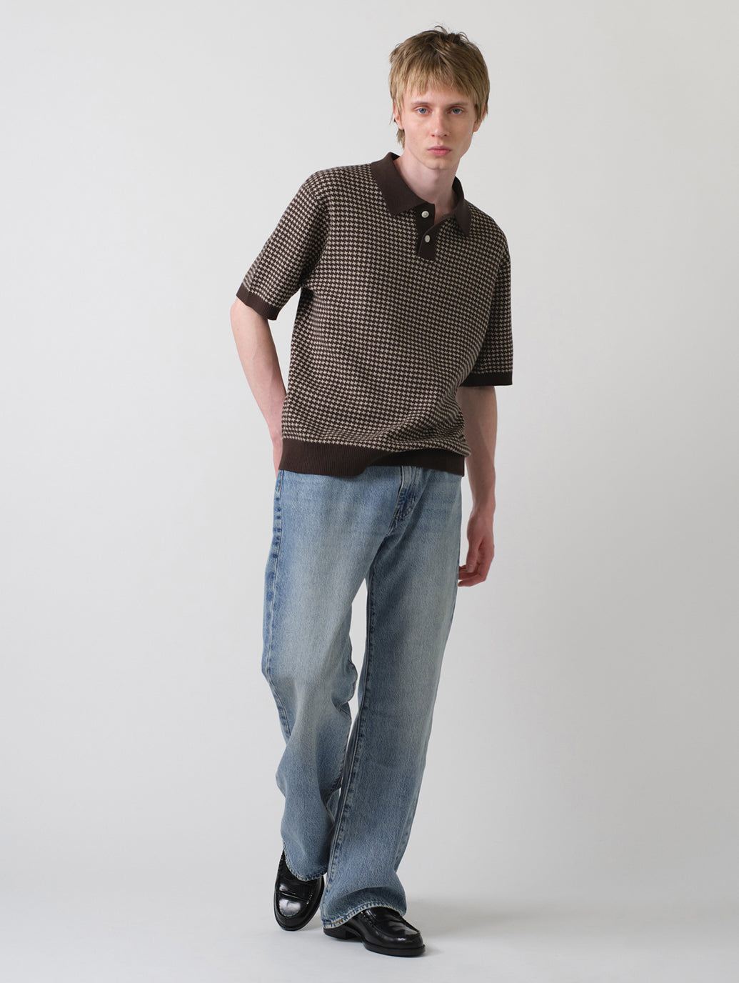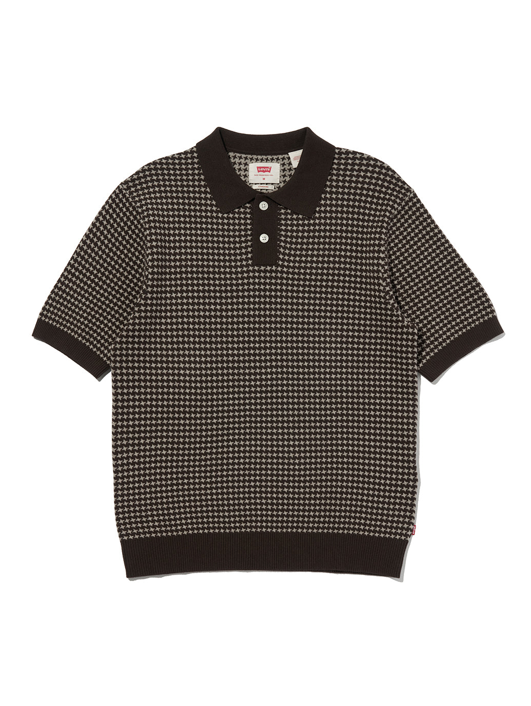 Levi's®で珍しいブラウンカラーで総柄をあしらったデザインのニットポロ。ニット素材なので伸縮性があり、ソフトな着心地。シンプルなパンツに合わせていただきたい一枚です。