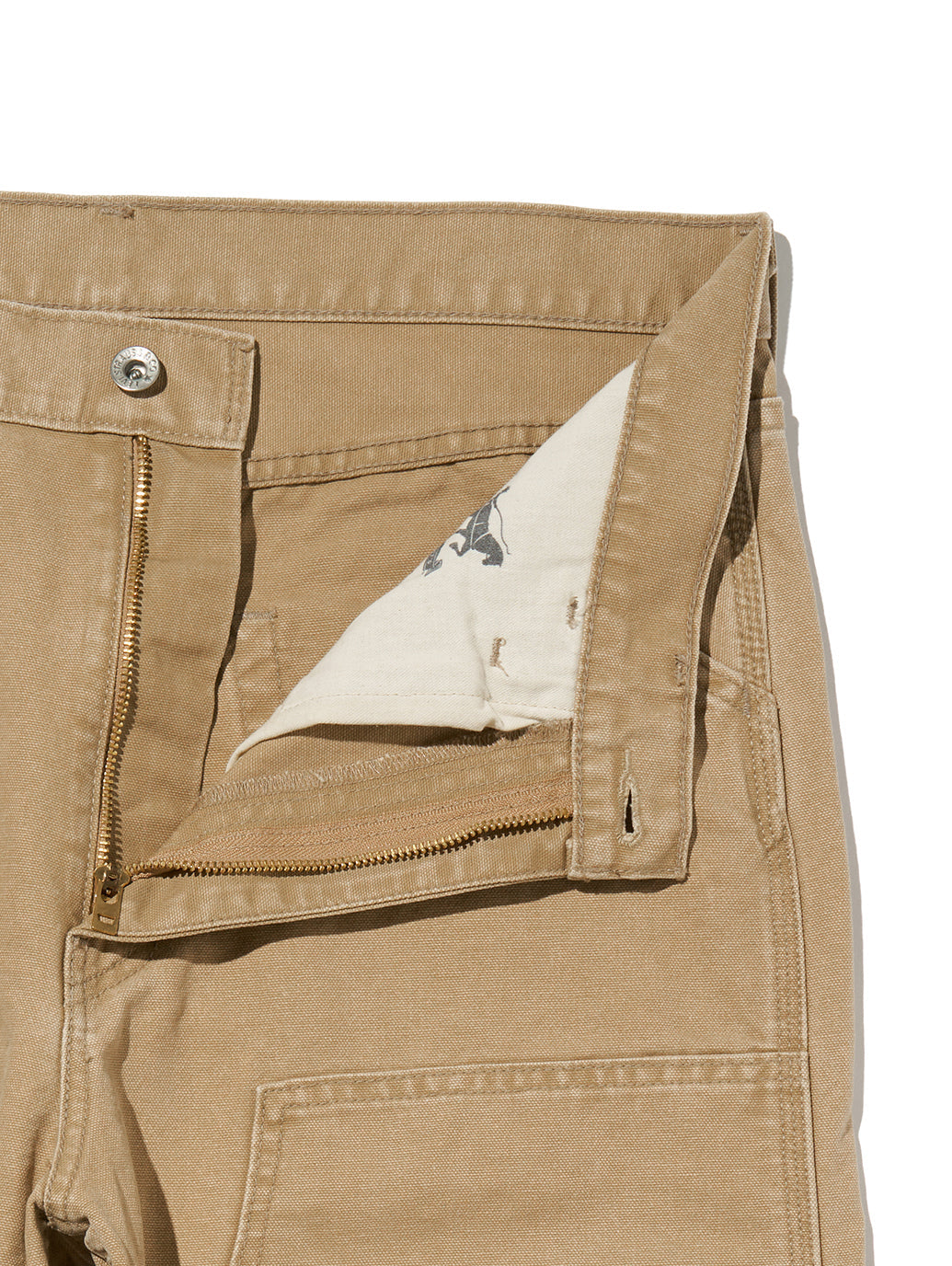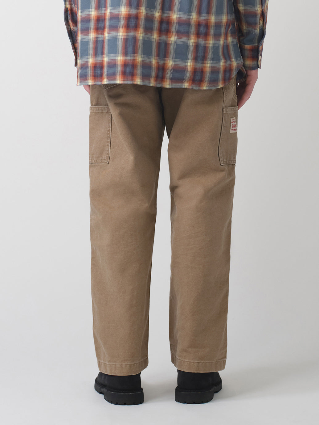 近年の90'sのリバイバルとしてストリート、スケートシーンで着実に知名度が拡がってきており568というロットナンバーが付いたステイルーズ。その名の通り全体的にゆったりとしたストレートシルエットに、綿100%の生地、耐久性のダブルニー構造を反映して当コレクションならではのワークウェア要素をプラスしました。良い塩梅にフェード加工を施したベージュカラーもポイント。ファッションアイテムのみならず、作業着としても活躍する一本です。