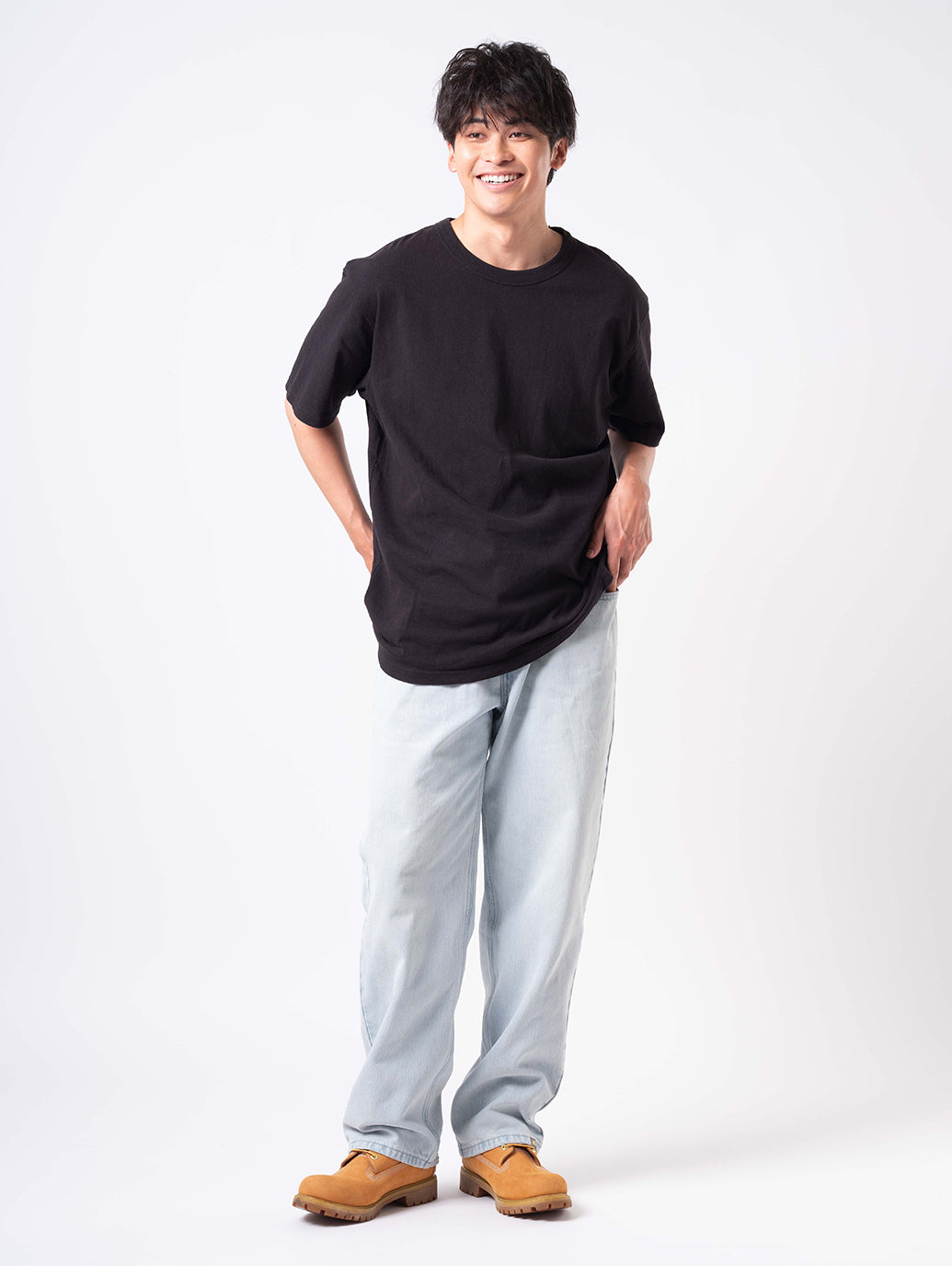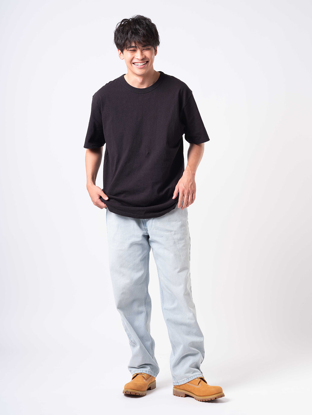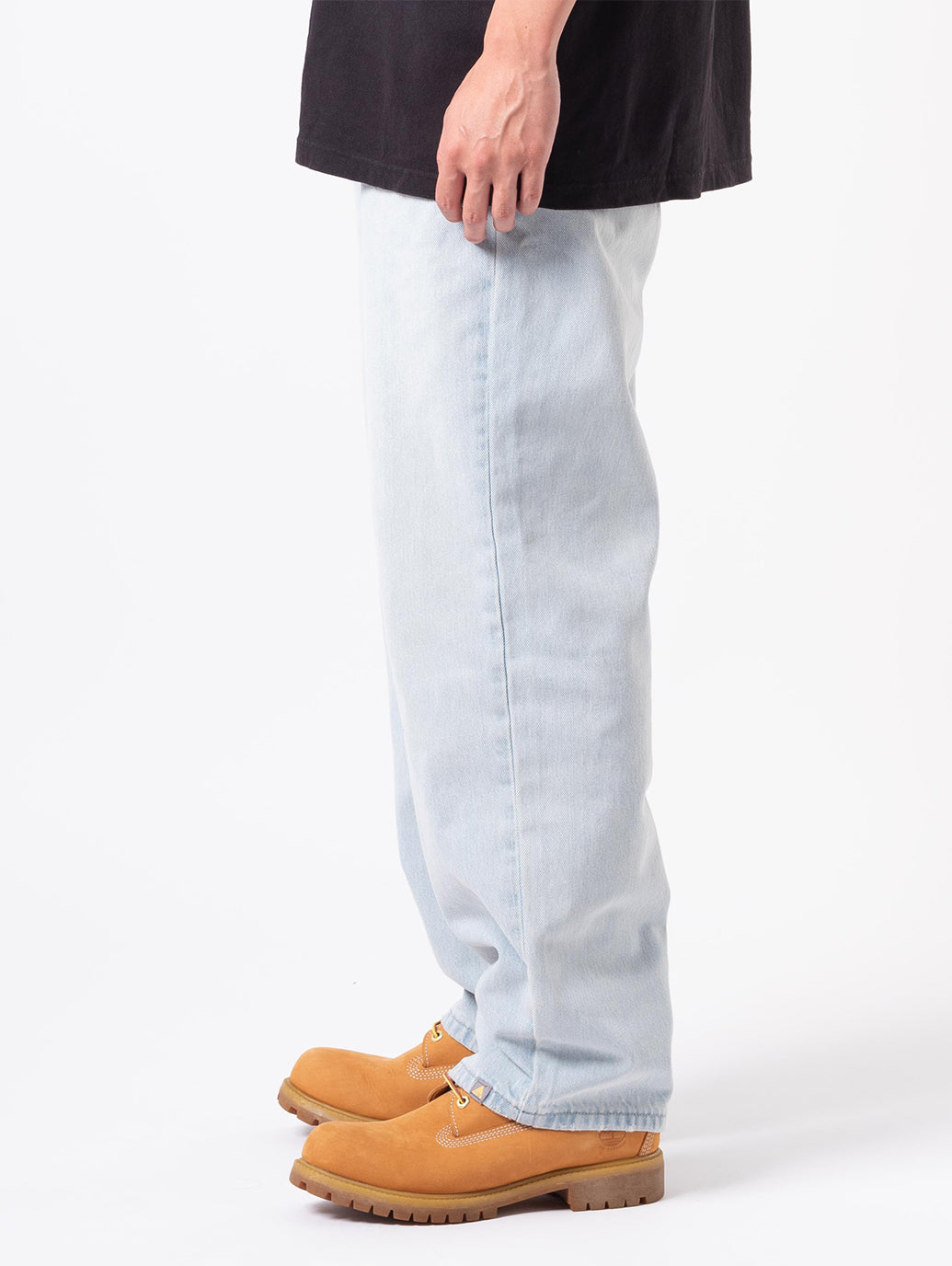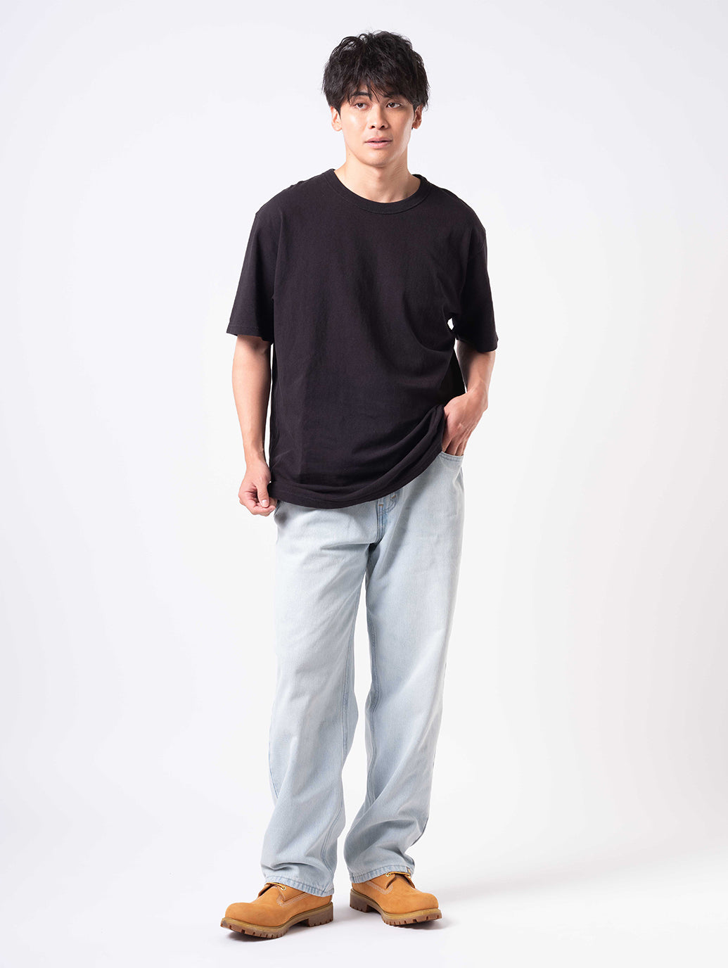 SILVERTAB™を代表するフィットの一つである「LOOSE」。全体的にルーズでゆとりがありながらも、裾に向かって細くなるテーパードになっているので足元が引き立つのが魅力のシルエット。色味が残る限界までの色落ち加工を施し、90年代を感じさせるいなたい色味と雰囲気のあるジーンズです。足元にボリュームを出しながら穿いて頂くのがオススメです。