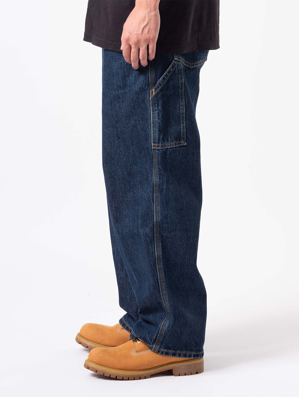 SILVERTAB™を代表するフィットの一つである「BAGGY」。ミッドライズ、動きやすいゆったりとした太腿回り、裾まで太さを保ったストレートシルエットです。また、ハンマーループやユーティリティポケットといったカーペンターのディテールを備えているのが特徴です。色落ち加工を最小限にして色味を十分に残している綿100%の生地なので耐久性も優れており、穿き馴染みと経変変化を楽しめる1本です。