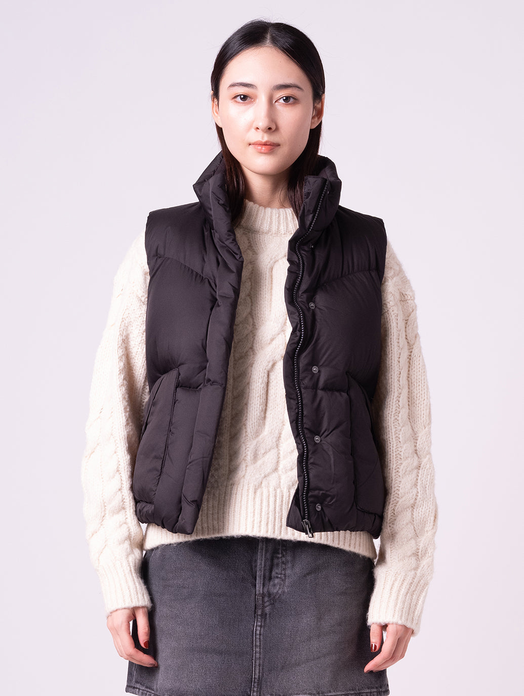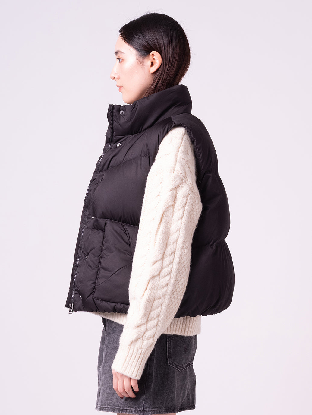 定番のベストをウエスタン風にアップデートした、ウエスタンバブルベスト。 ジッパーとボタン留めのフロントデザインに、スタンダードフィットで快適な着心地。 中綿入りで暖かく、シャツやスウェットにさらっと羽織るだけでこなれ感のあるスタイルに。 季節の変わり目やレイヤードにも活躍する、長く付き合いたい一着です。