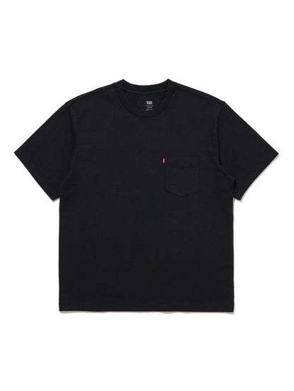 夏の定番トップスの一つであるポケットTシャツ。ブラックカラーのゆったりとしたリラックスフィットのボディの胸元にポケットを配したシンプルなデザインです。幅広いスタイリングで重宝する一着です。