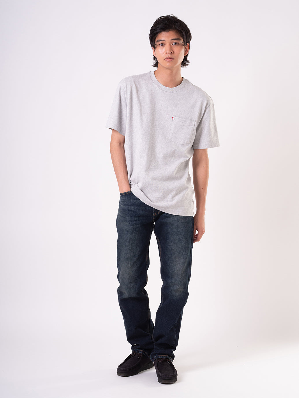 夏の定番トップスの一つであるポケットTシャツ。グレーカラーのゆったりとしたリラックスフィットのボディの胸元にポケットを配したシンプルなデザインです。幅広いスタイリングで重宝する一着です。