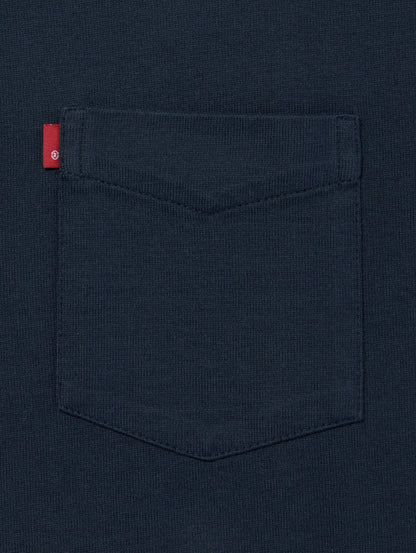 夏の定番トップスの一つであるポケットTシャツ。ネイビーカラーのゆったりとしたリラックスフィットのボディの胸元にポケットを配したシンプルなデザインです。幅広いスタイリングで重宝する一着です。