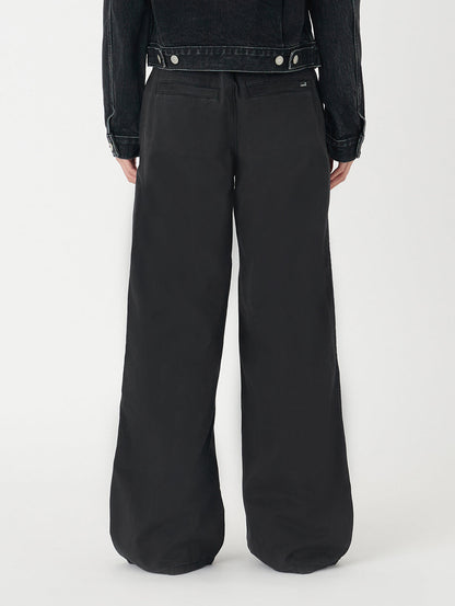 定番アイテムとして人気のチノパンツをオーバーサイズにアップデートしました。すっきりしたシルエットを引き立てるミッドライズで、太ももから下はルーズフィットのゆったりとしたストレートレッグです。シャツやブラウスと併せてクラシックなスタイルもよし、パーカーやオーバーサイズのトップスでカジュアルな着こなしも楽しめる1着です。